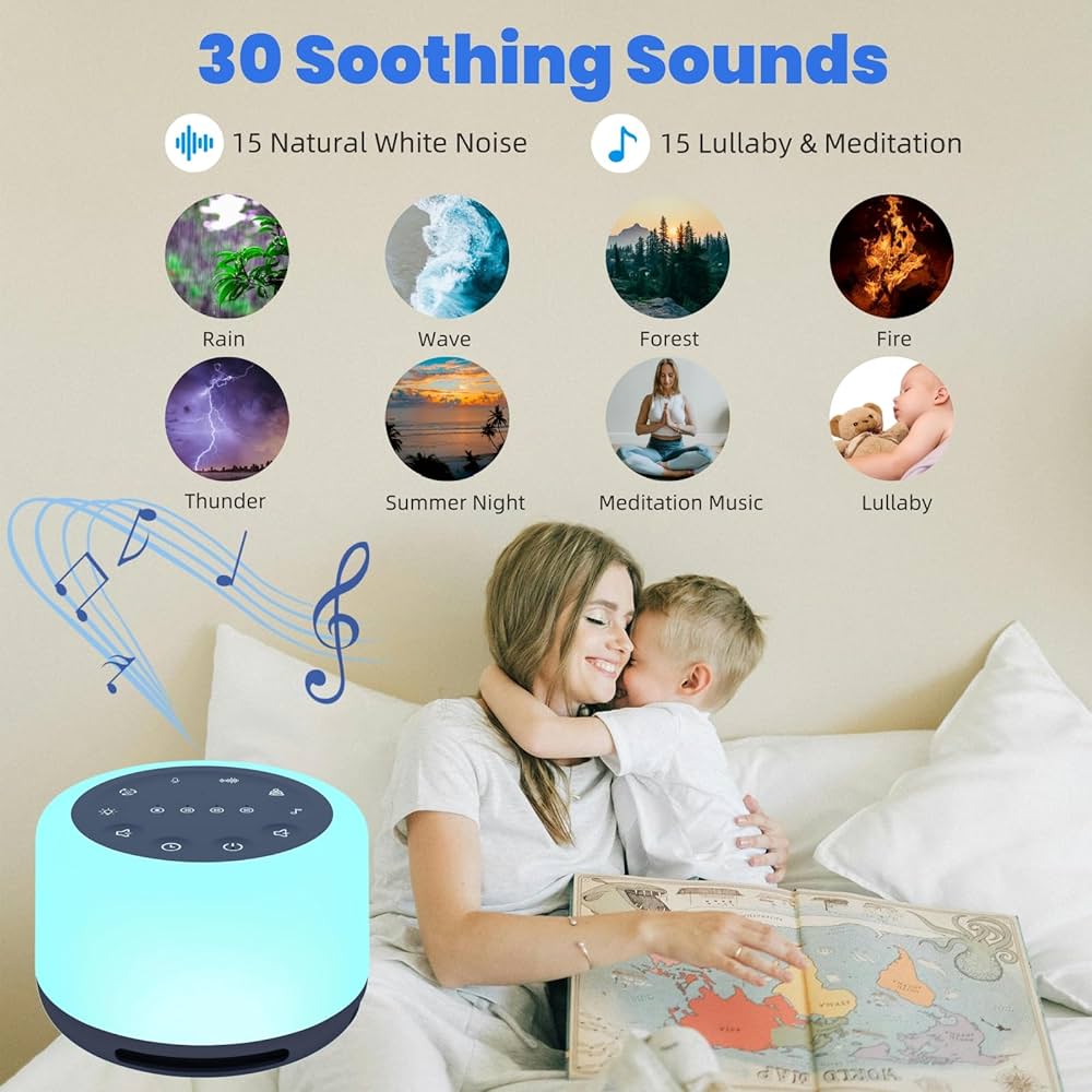 Máquina de ruido blanco para dormir 3 en 1 con 30 sonidos relajantes.