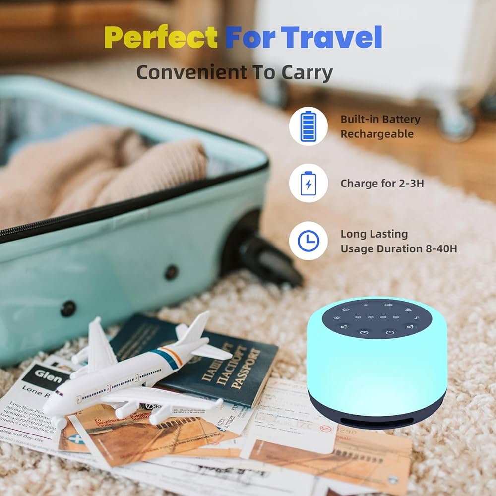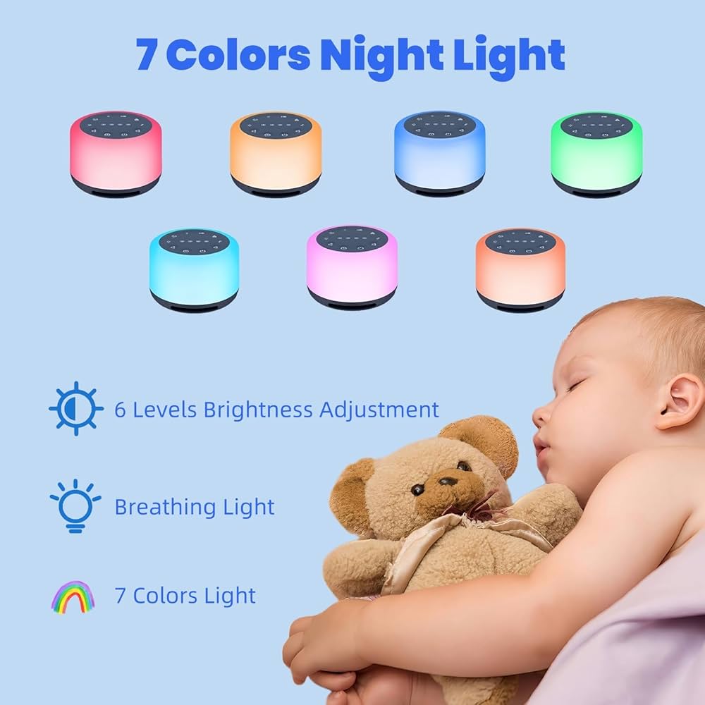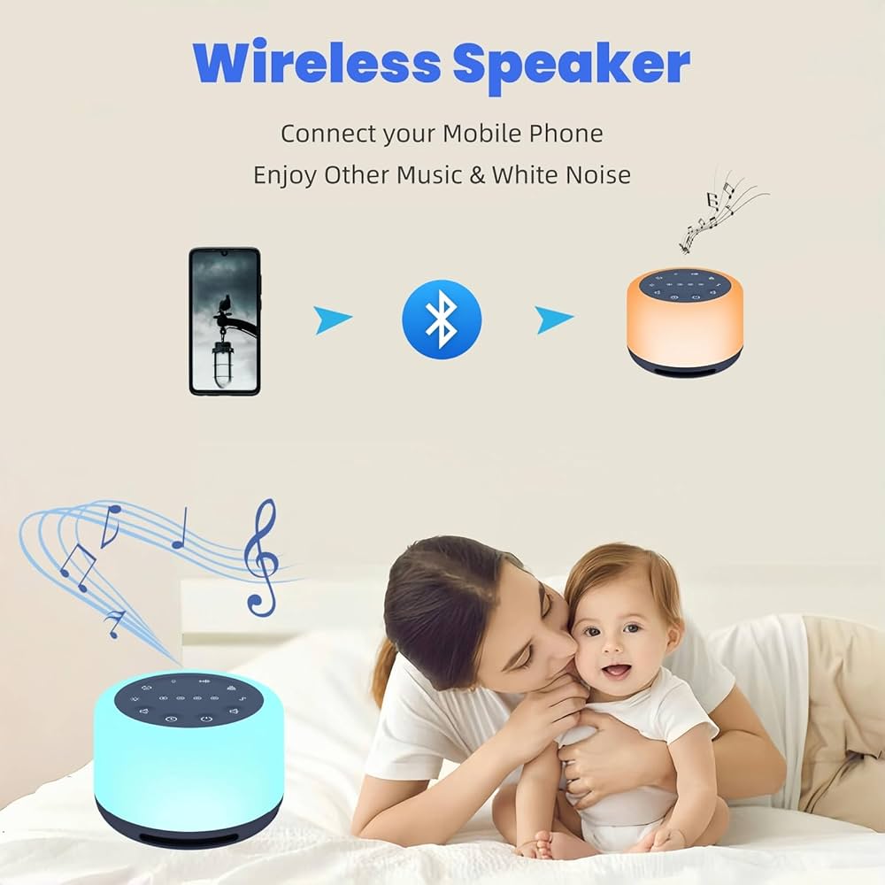 30 Sonidos Relajantes Seleccionados】La máquina de ruido blanco LeCoirrax actualizada les ofrece a usted y a sus bebés una experiencia auditiva exquisita. Esta máquina de sonidos contiene 30 sonidos relajantes seleccionados (15 de ruido blanco natural y 15 sonidos para niños y meditación). También puede ayudarle a bloquear el ruido ambiental, permitiéndole dormir más rápido y mejor, facilitando la siesta de su bebé, mejorando sus sesiones de yoga y mucho más. 🎵【Altavoz Inalámbrico con Excelente Calidad de Sonido】La nueva máquina de sonidos 3 en 1 se puede usar como altavoz inalámbrico. Al conectarla a su teléfono o computadora y reproducir música, los altavoces integrados de alta gama con una calidad de sonido excepcional le brindarán una experiencia agradable. 🎵【7 Luces Nocturnas y 6 Niveles de Brillo】Esta máquina de sonidos incluye 7 colores (Rojo/Amarillo/Azul Marino/Verde/Azul/Morado/Naranja) para los modos de luz nocturna o modo de luz de respiración. Además, cuenta con 6 niveles de brillo para un uso sencillo. La luz nocturna proporciona mayor seguridad y ayuda a los bebés a sentirse tranquilos, creando la atmósfera perfecta para conciliar el sueño, tanto para niños como para adultos o bebés.