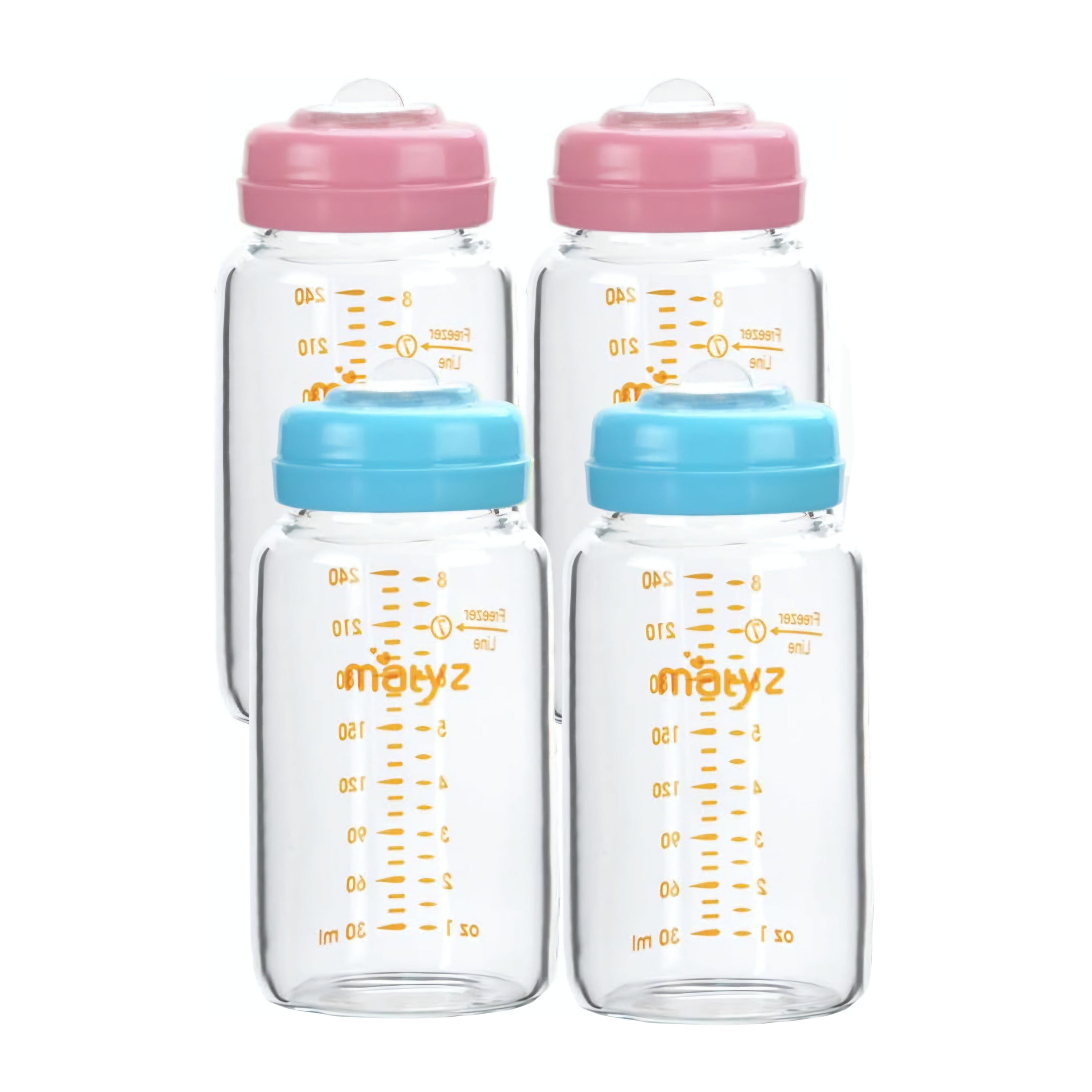 Matyz- Botellas de vidrio para almacenamiento de leche materna, paquete de 4 de 8oz