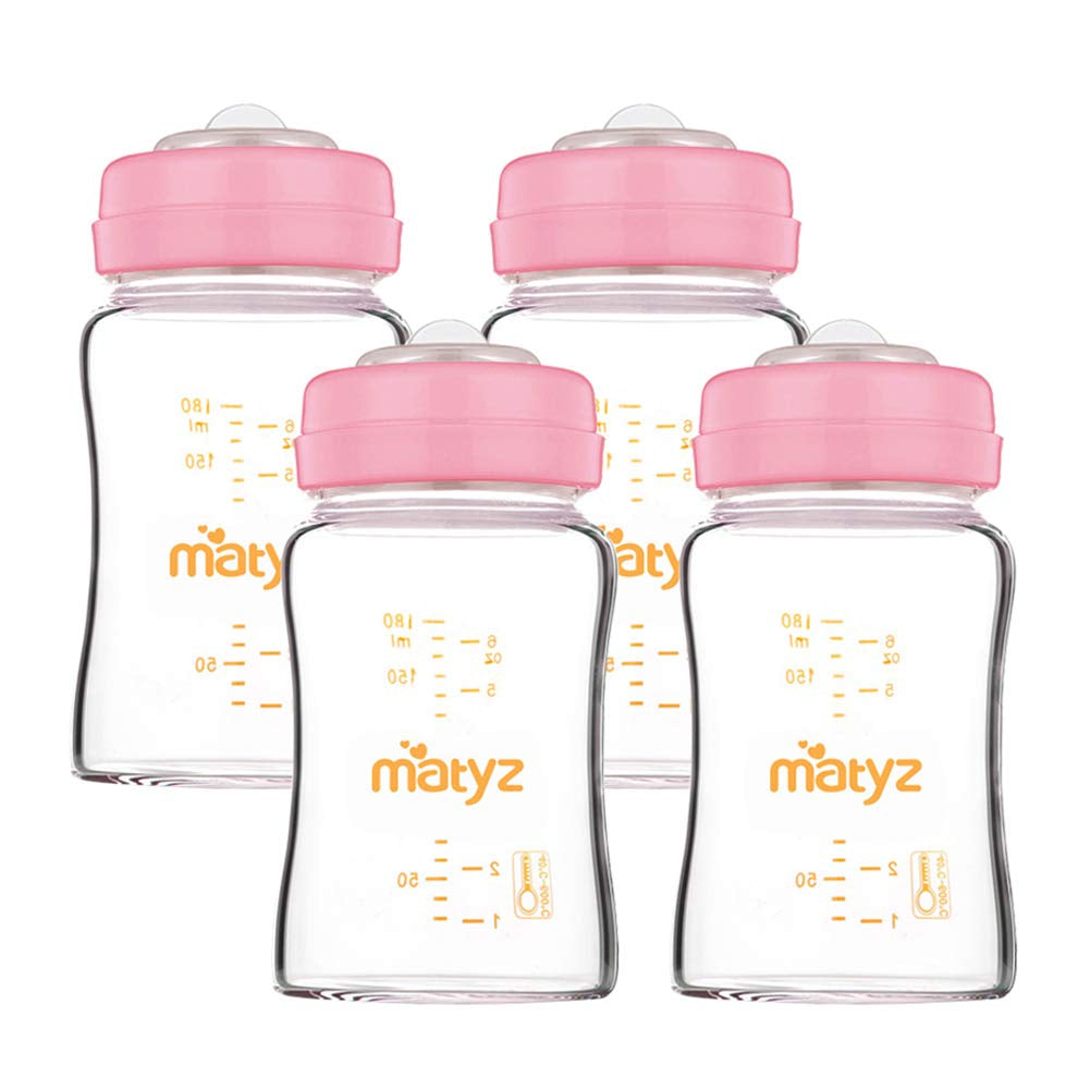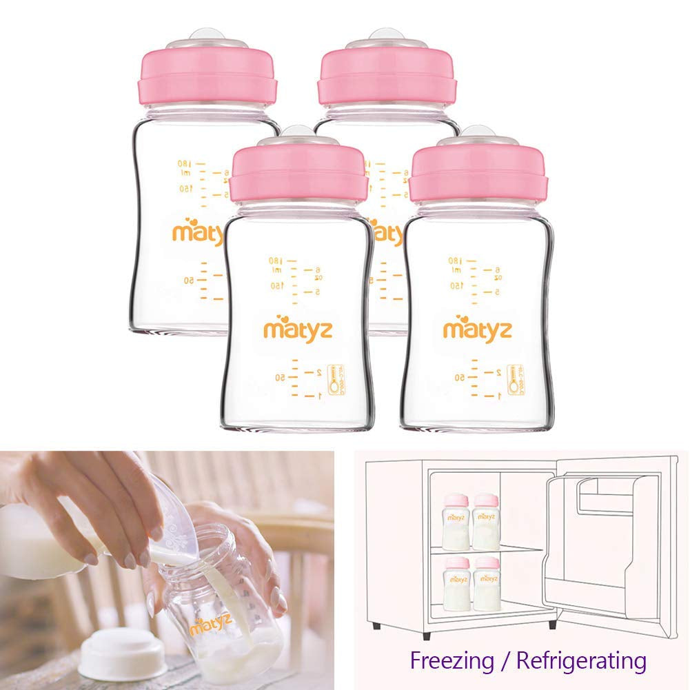 Matyz Paquete de 4 botellas de almacenamiento y recogida de leche materna (rosa, 6 onzas cada una)