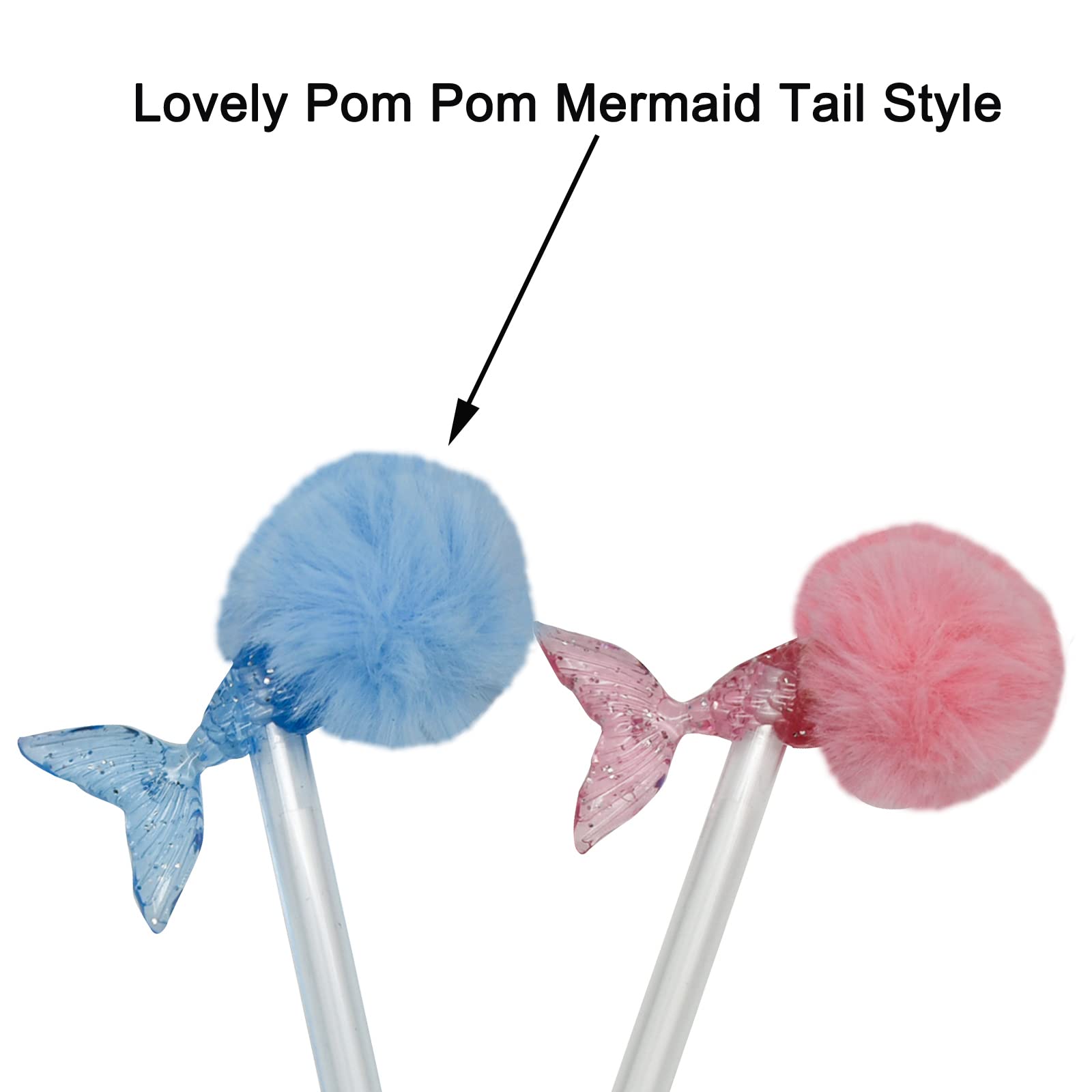 Maydahui 12 bolígrafos de gel con pompones de cola de sirena
