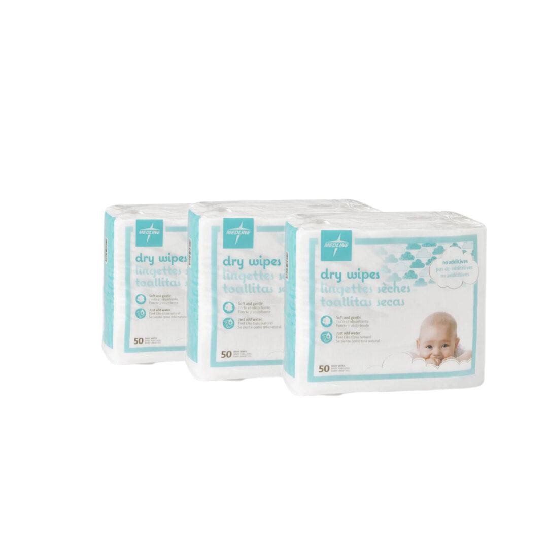 Medline Babysoft - Paños desechables de limpieza en seco para pieles sensibles 3 paquetes de 50 unidades