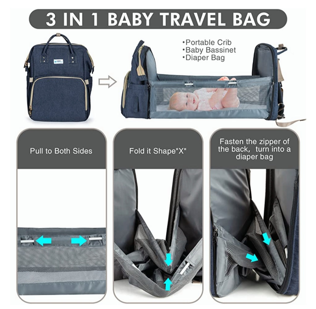Cama de bebé Esta bolsa es totalmente expandible en una cómoda y segura cama pequeña para su pequeño. Diseño plegable. No necesita montaje. Solo ábrelo, úsalo y cierralo. Tan simple como eso. Fácil de llevar a cualquier lugar. Protección contra el sol con parasol