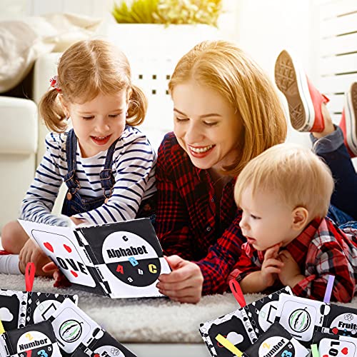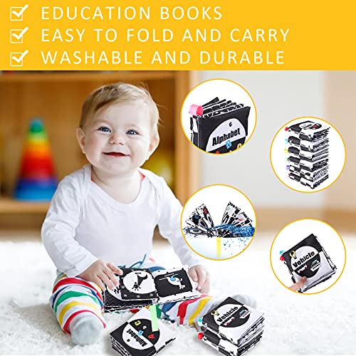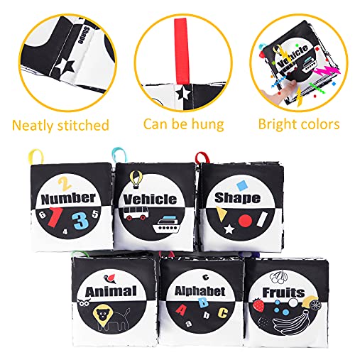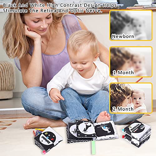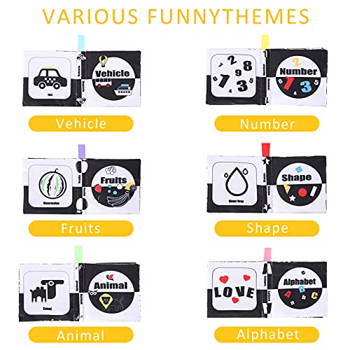 COLOR BLANCO Y NEGRO: Nuestro juguete de libro de tela para niños pequeños está diseñado con blanco y negro de alto contraste. El libro suave para bebés captura el período importante de la cognición visual del bebé, estimula la visión del bebé, aumenta la capacidad cognitiva del bebé a través del tacto y promueve el desarrollo de los sentidos y el cerebro.