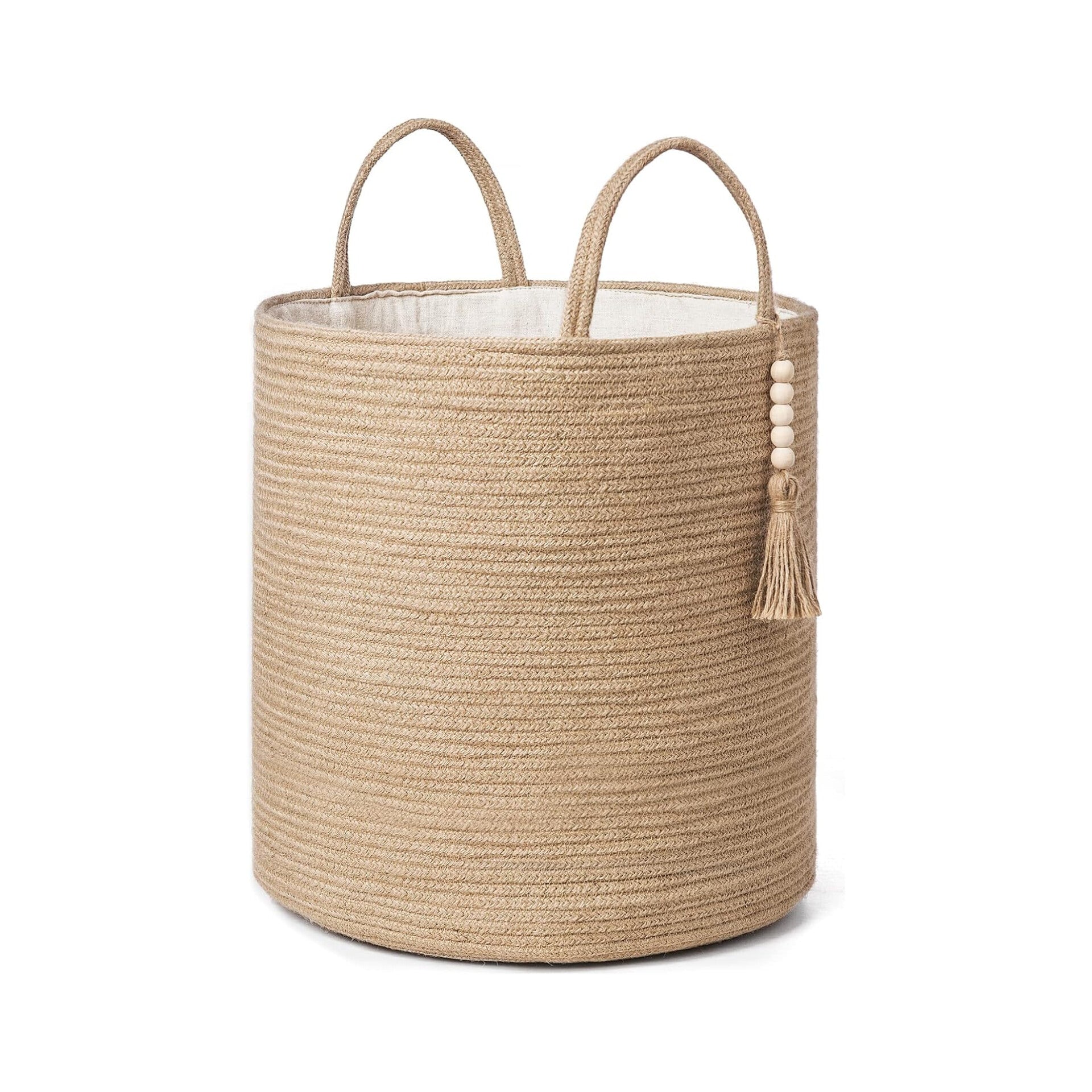 Material: cuerda de yute natural. El tamaño es: 14.9 "W × 17.7" L, hecho de material ecológico y saludable. El envío doblado podría hacer que la canasta se deforme un poco, pero los defectos en la curvatura desaparecerán con el tiempo.