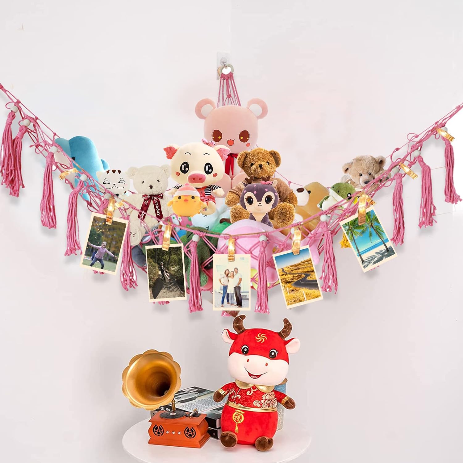 Decoración práctica: es fácil de instalar. Si tu animal de peluche está en el lado pesado, no utilices el gancho de pared adhesivo. Esta es una bonita manera de mostrar animales de peluche y dar un toque decorativo adicional a una habitación infantil.