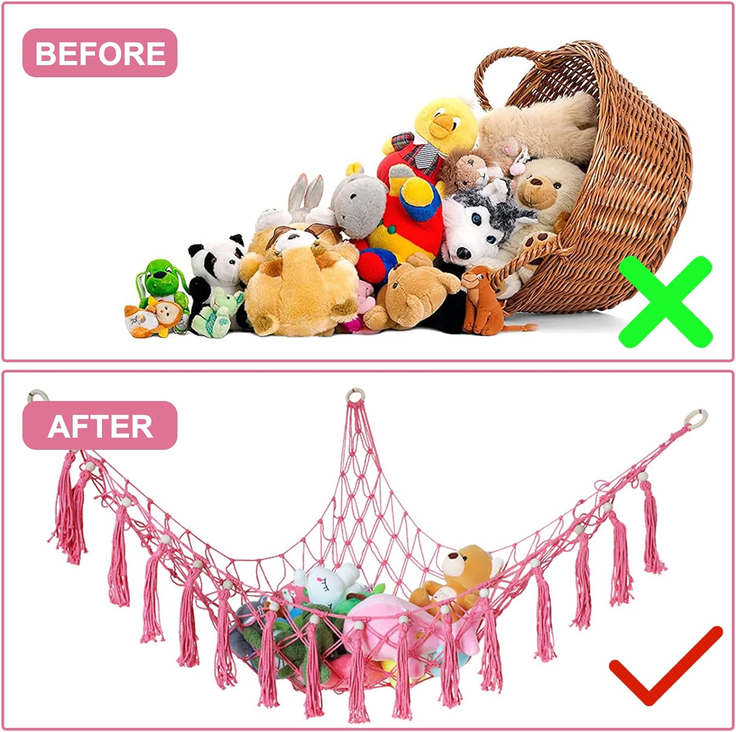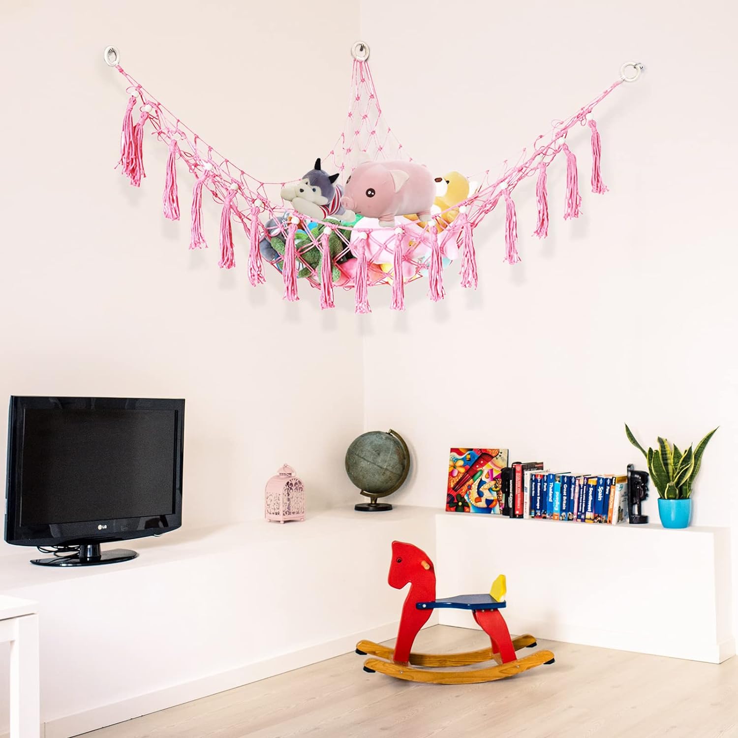 El organizador perfecto: si hay demasiados juguetes con los que no quieres jugar, es una gran solución de almacenamiento vertical con la ventaja añadida de limpiar el espacio y añadir un poco de diversión bohemia al espacio.