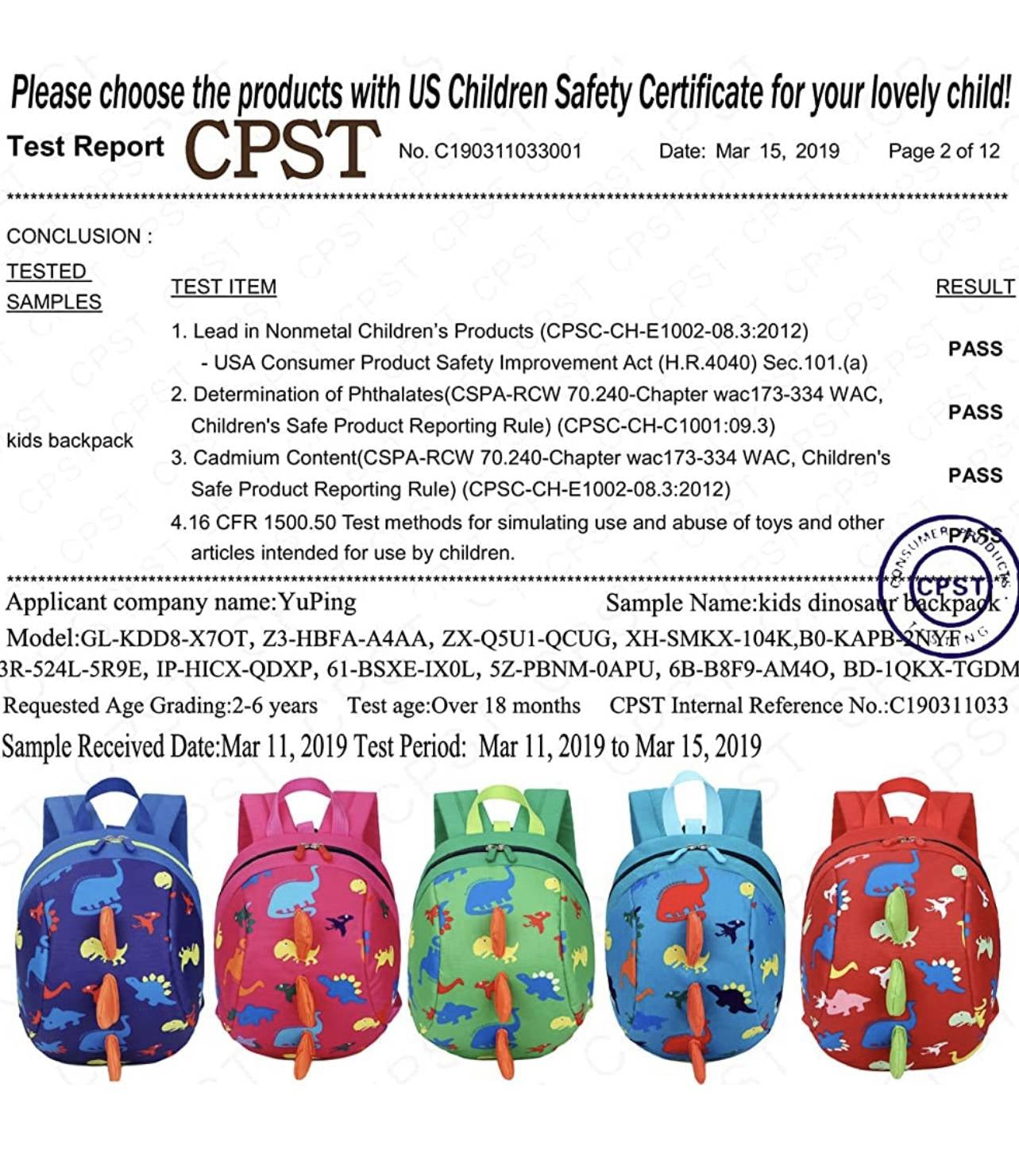 Mochila de dinosaurio para niños pequeños con correa de seguridad