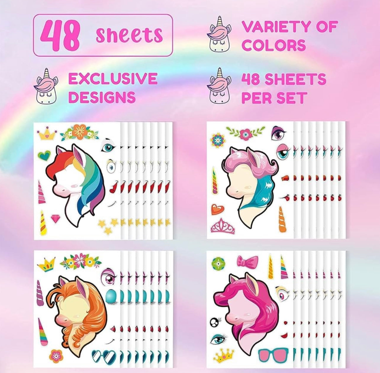 Mocoosy 48 hojas de pegatinas de unicornio con forma de cara