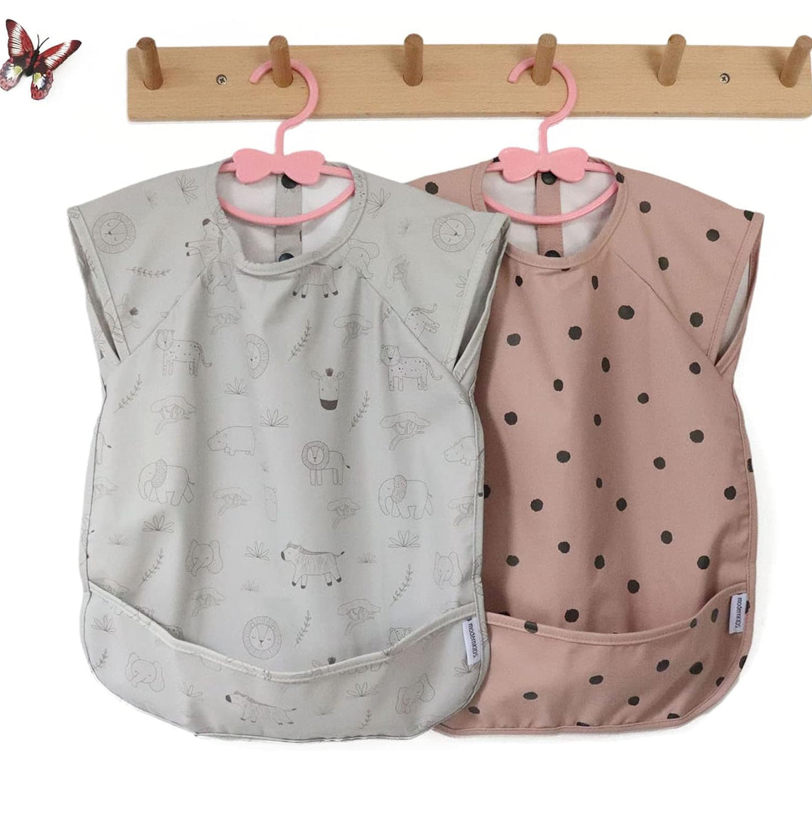 modernKIDS Babero impermeable de manga corta con bolsillo para atrapar migas