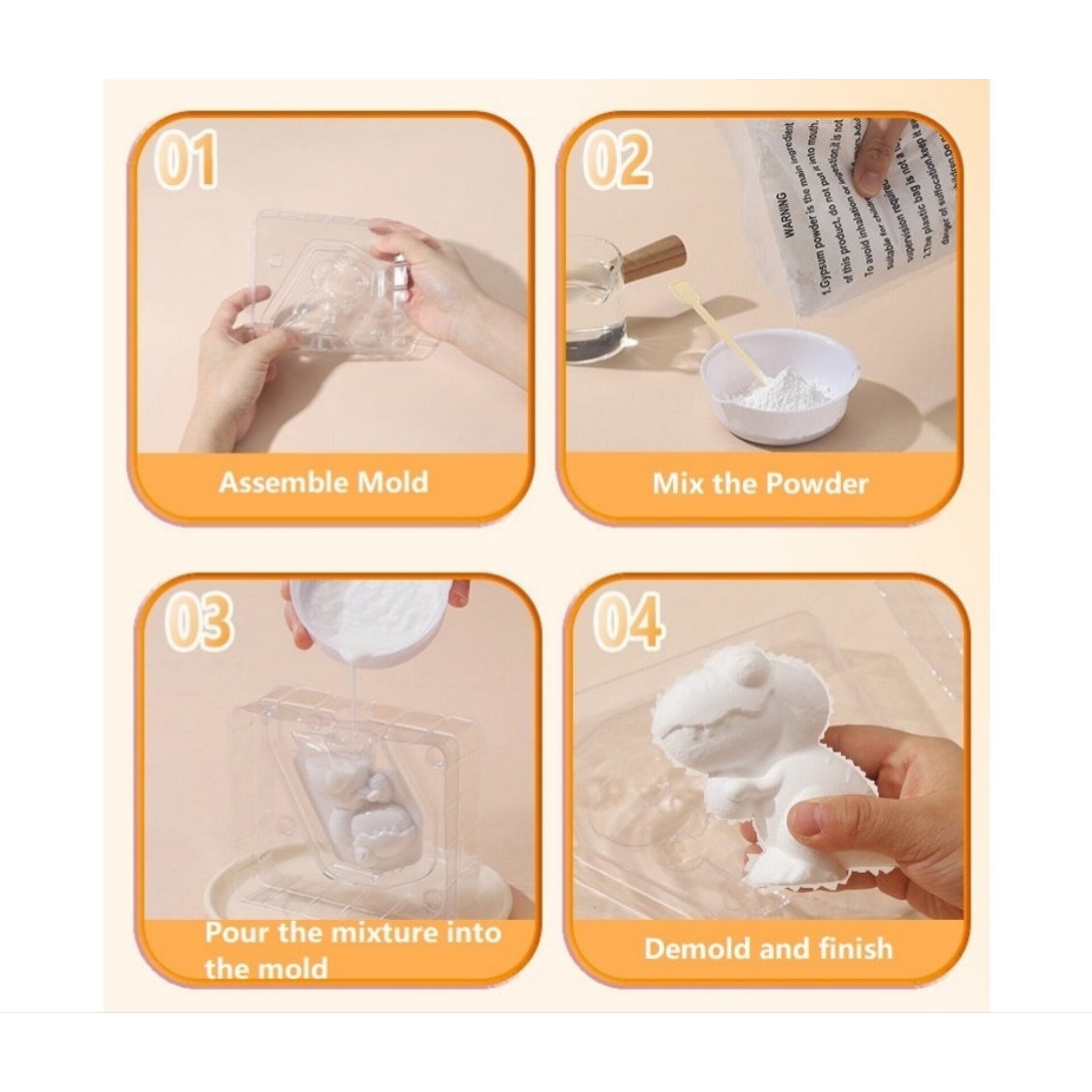 1. Simplemente mezcle el polvo con agua y viértalo en el molde