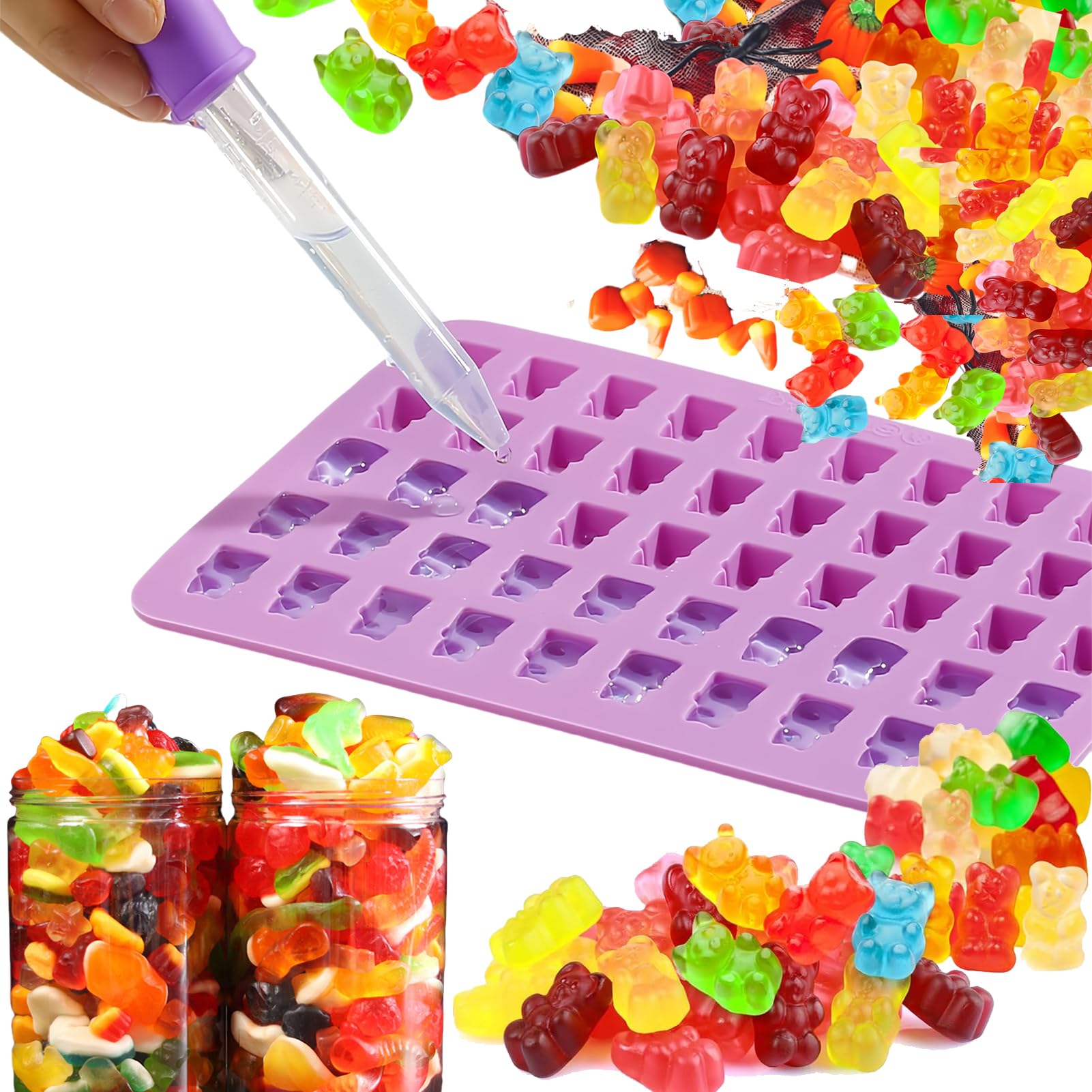Molde de gomitas para niños, incluye mini dinosaurio, oso, corazones y mini dona. 201 cavidades, 3 goteros. 4 unidades