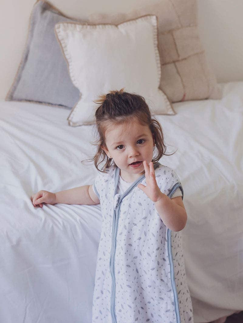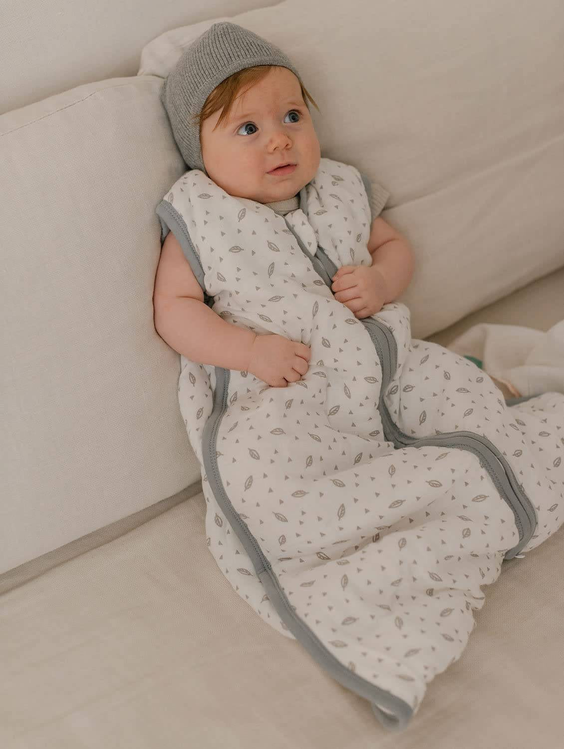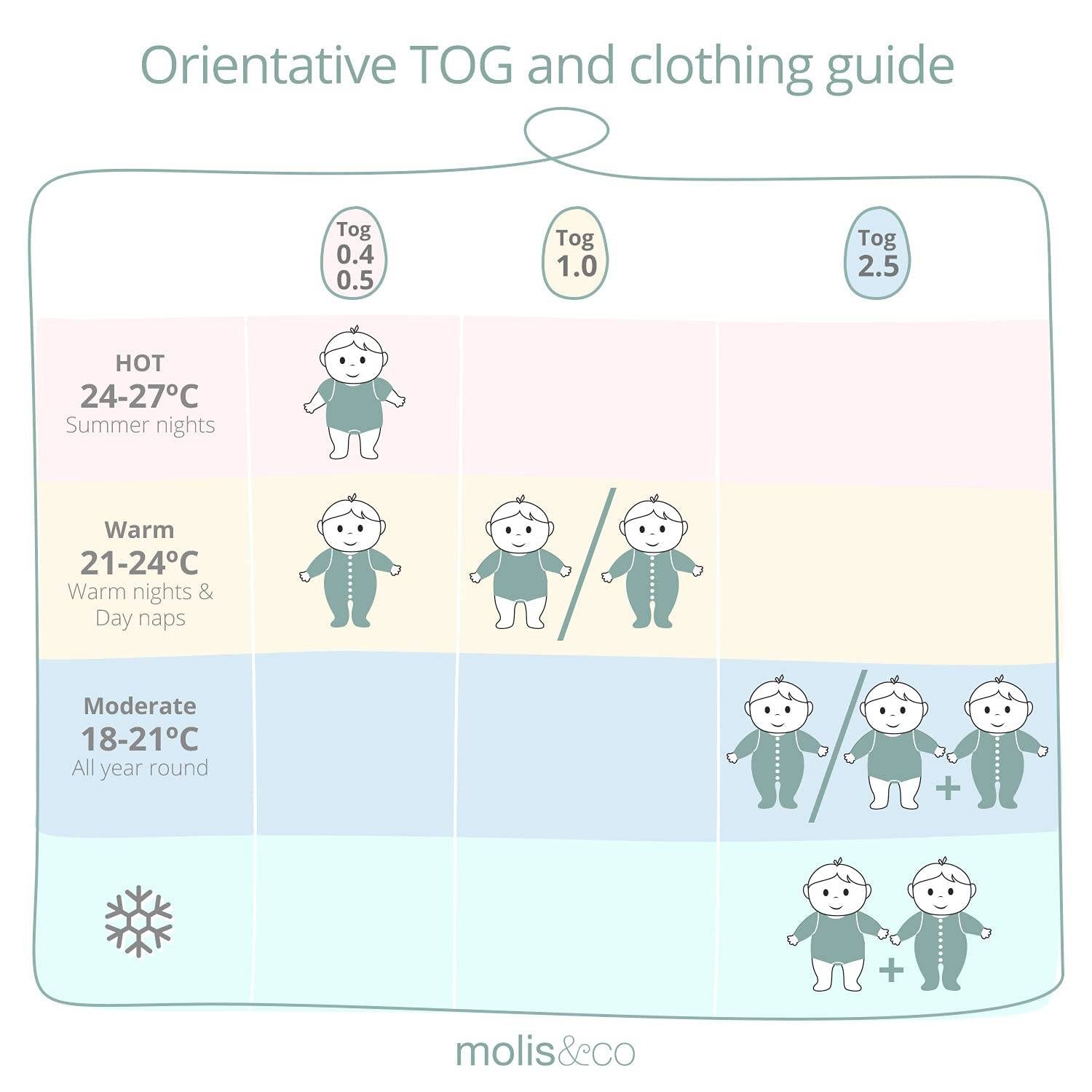 - Saco de dormir súper fresco y ligero para bebés diseñado por Molis&co. Ideal para verano (0,5 tog) o para habitaciones con temperaturas superiores a 21 oC. Sin mangas. Saco de dormir para bebés de 6 y 18 meses de edad, mide 35.8 pulgadas de longitud. Impresión de hoja gris unisex.
