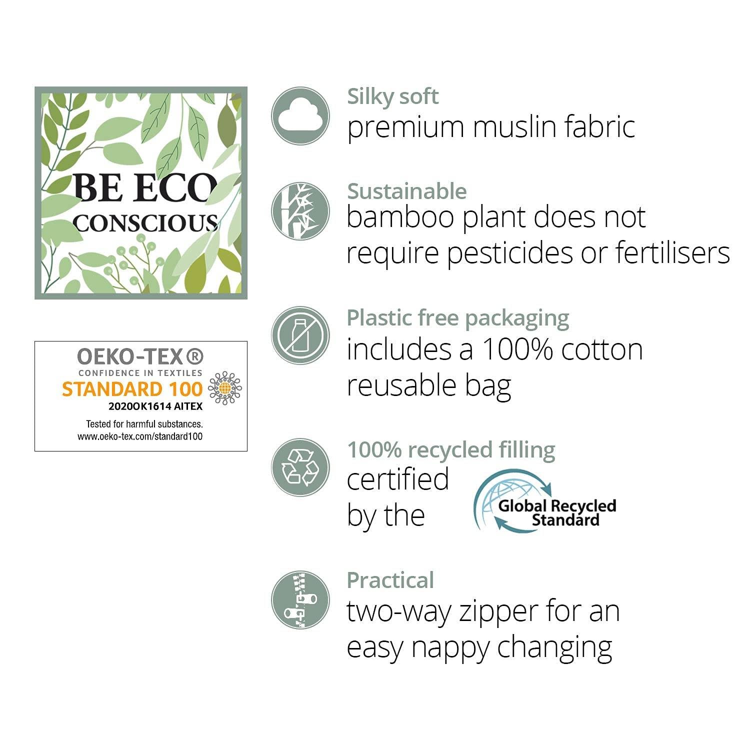 - Tela de muselina súper suave de alta calidad: los sacos de dormir Molis&co están hechos de muselina especialmente seleccionada, prelavada. Este tejido está hecho de viscosa de bambú (70%) y algodón (30%), suave al tacto, lo que lo hace ideal para la delicada piel del bebé. La muselina también es altamente transpirable y se suaviza después de cada lavado, garantizando un producto duradero y de alta calidad.