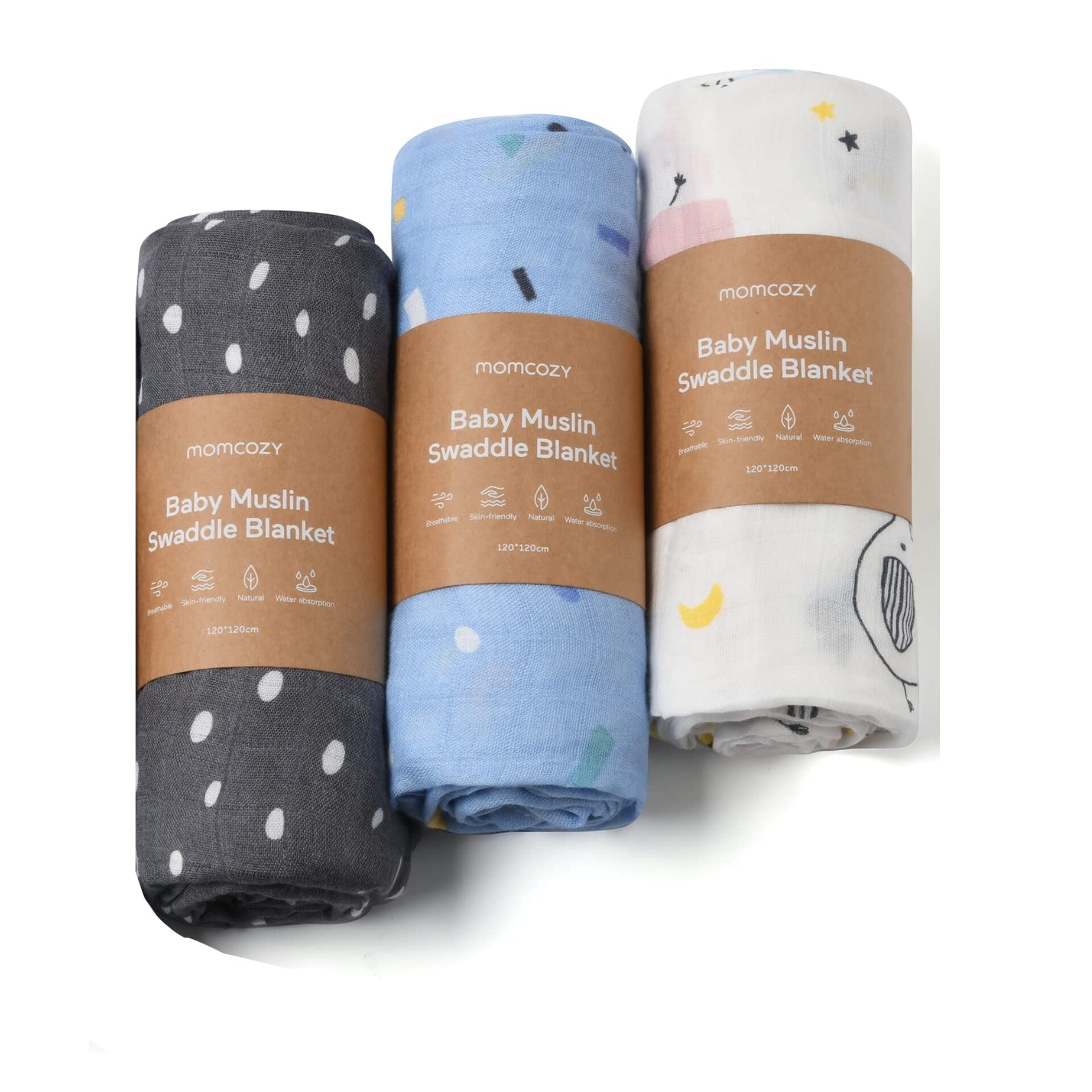 Momcozy- Paquete de 3 mantas de muselina unisex para bebé de 47 x 47 pulgadas