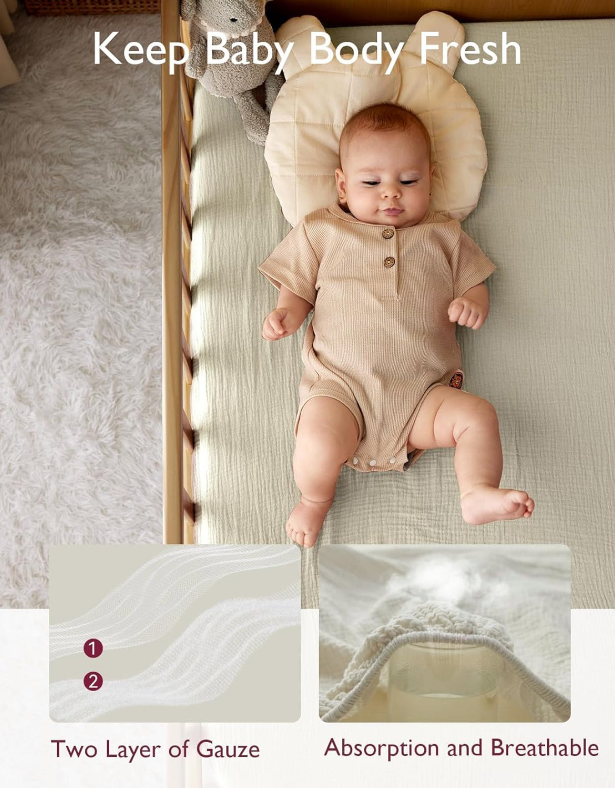 Momcozy Sábanas bajeras estándar de muselina para cuna, 52 x 28 pulgadas