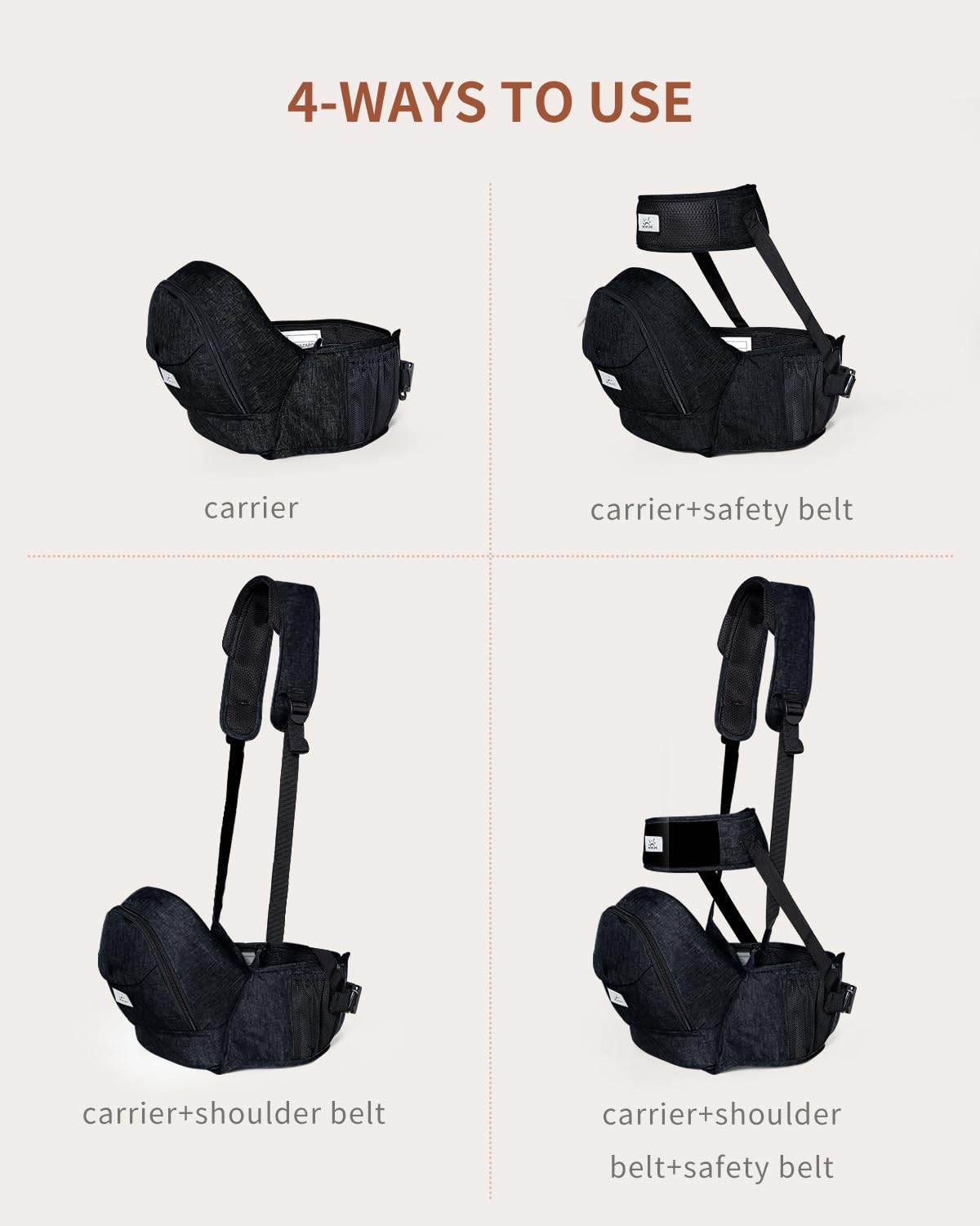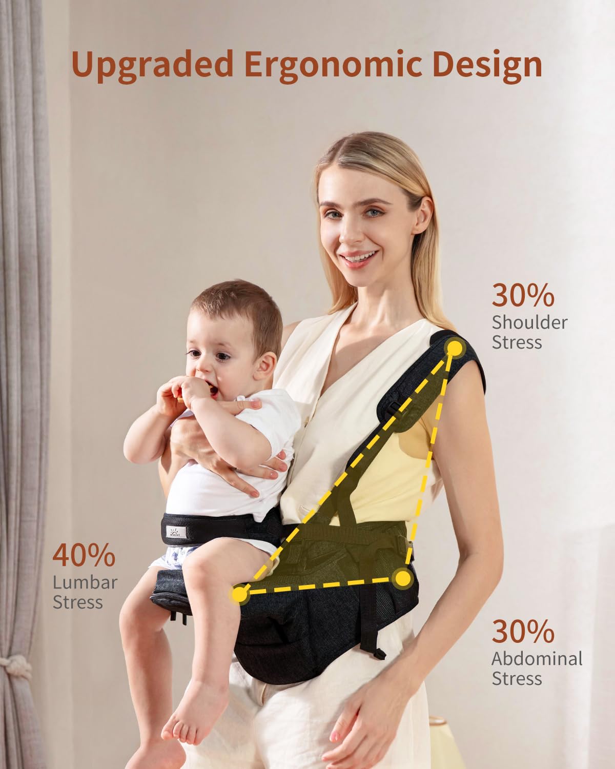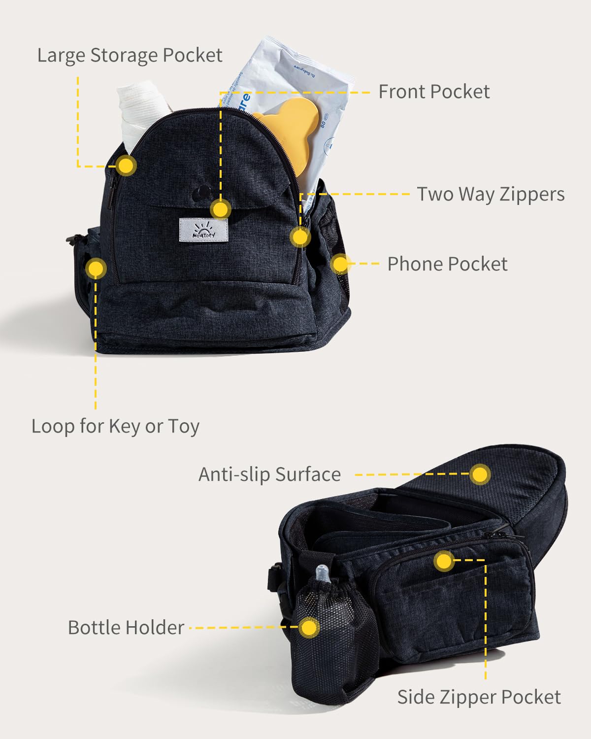 MOMTORY - Portabebés, portabebés, con correa ajustable y varios bolsillos