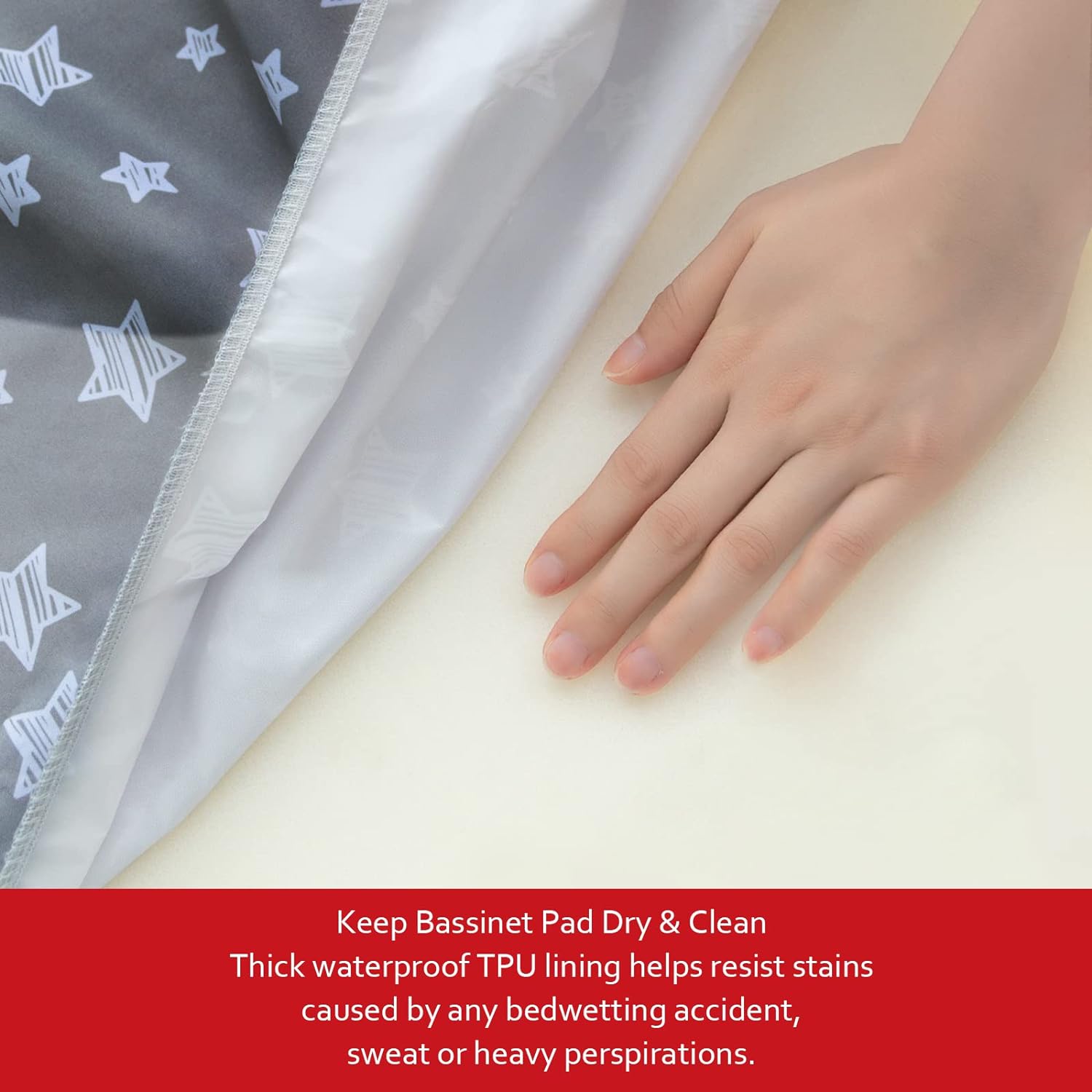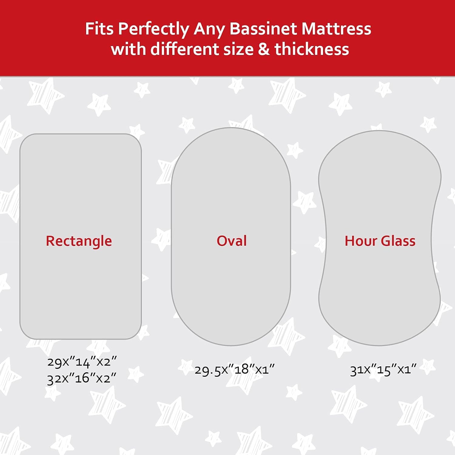 Ajuste flexible: 33 x 17 pulgadas. Nuestras sábanas de moisés se adaptan a casi todos los colchones estándar ovalados, redondos, rectangulares y con forma de reloj de arena. Cada sábana viene con una banda elástica envuelta en la parte inferior para mayor seguridad.