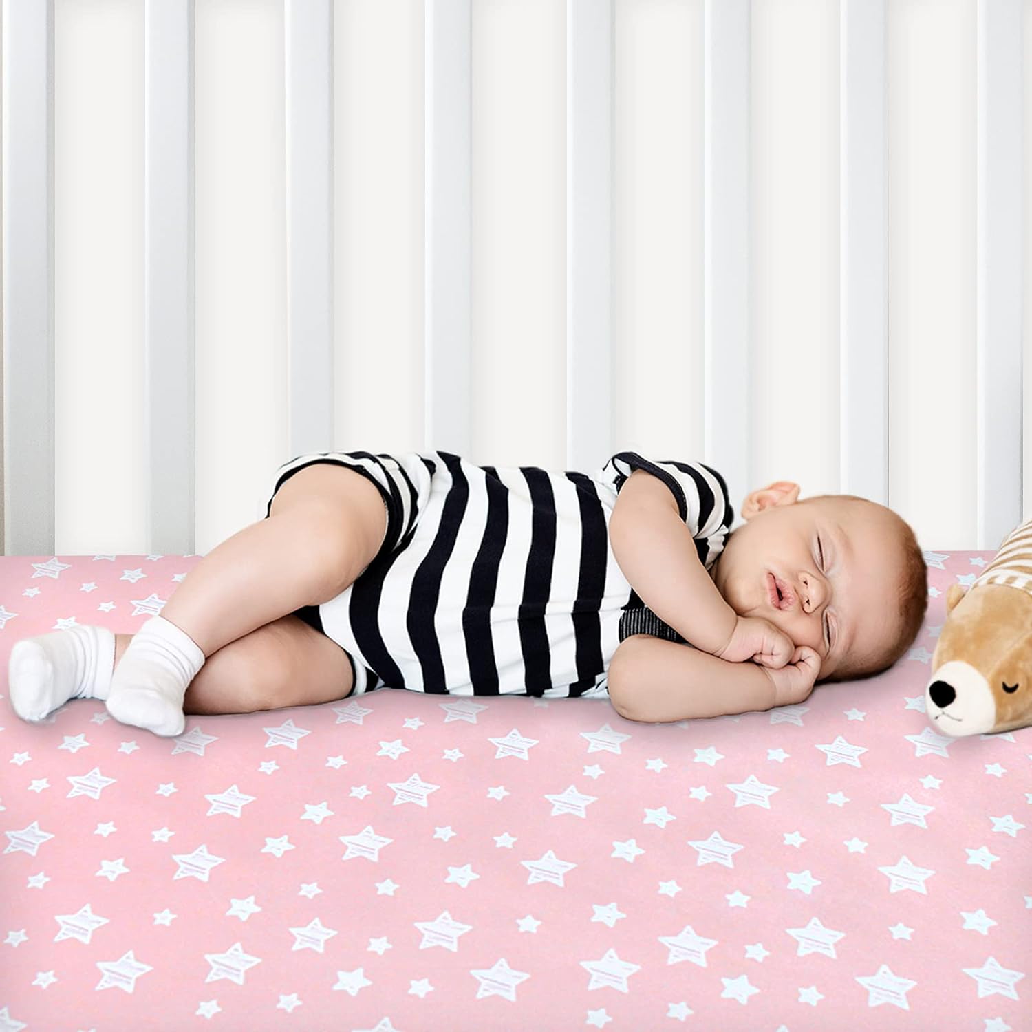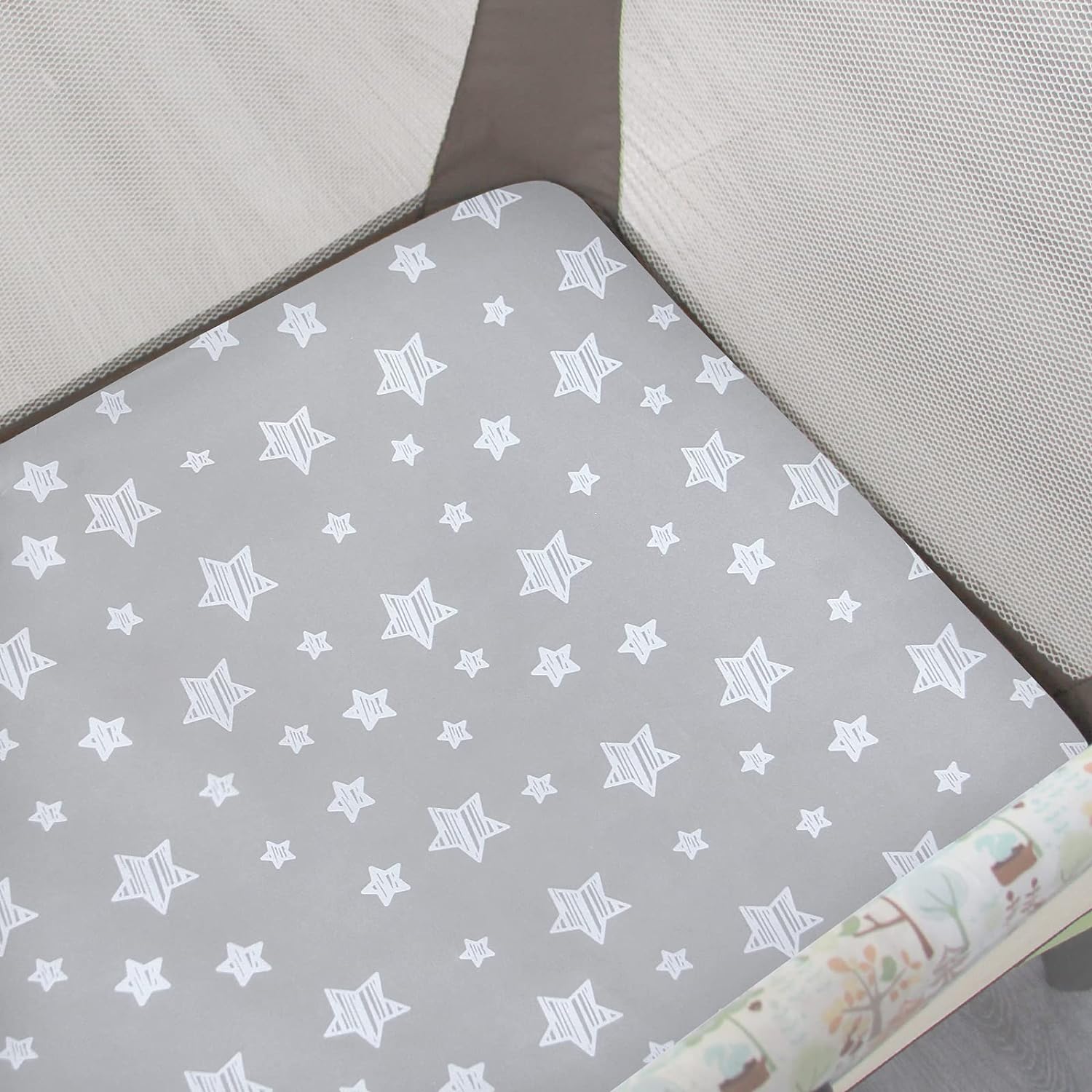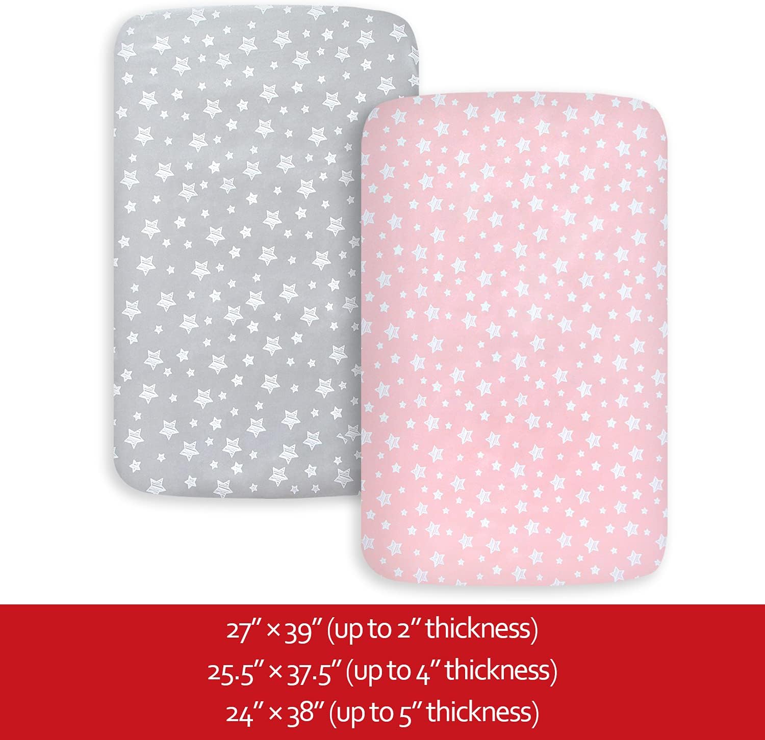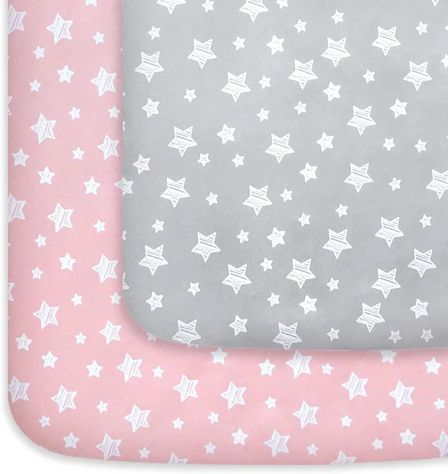 Moonsea-Sábanas para cuna, compatible con Graco Pack n Play, material suave y transpirable, color gris y rosa