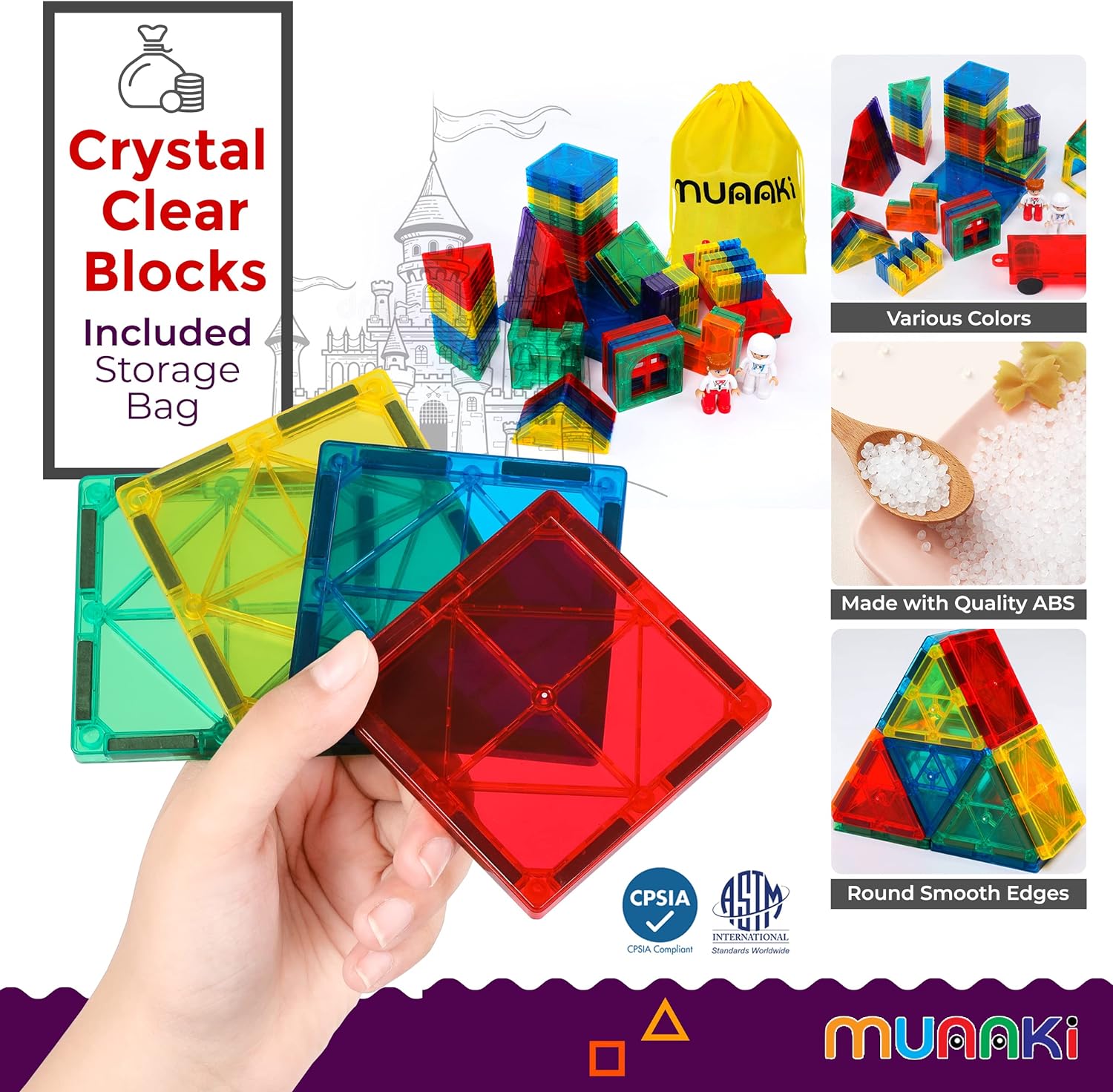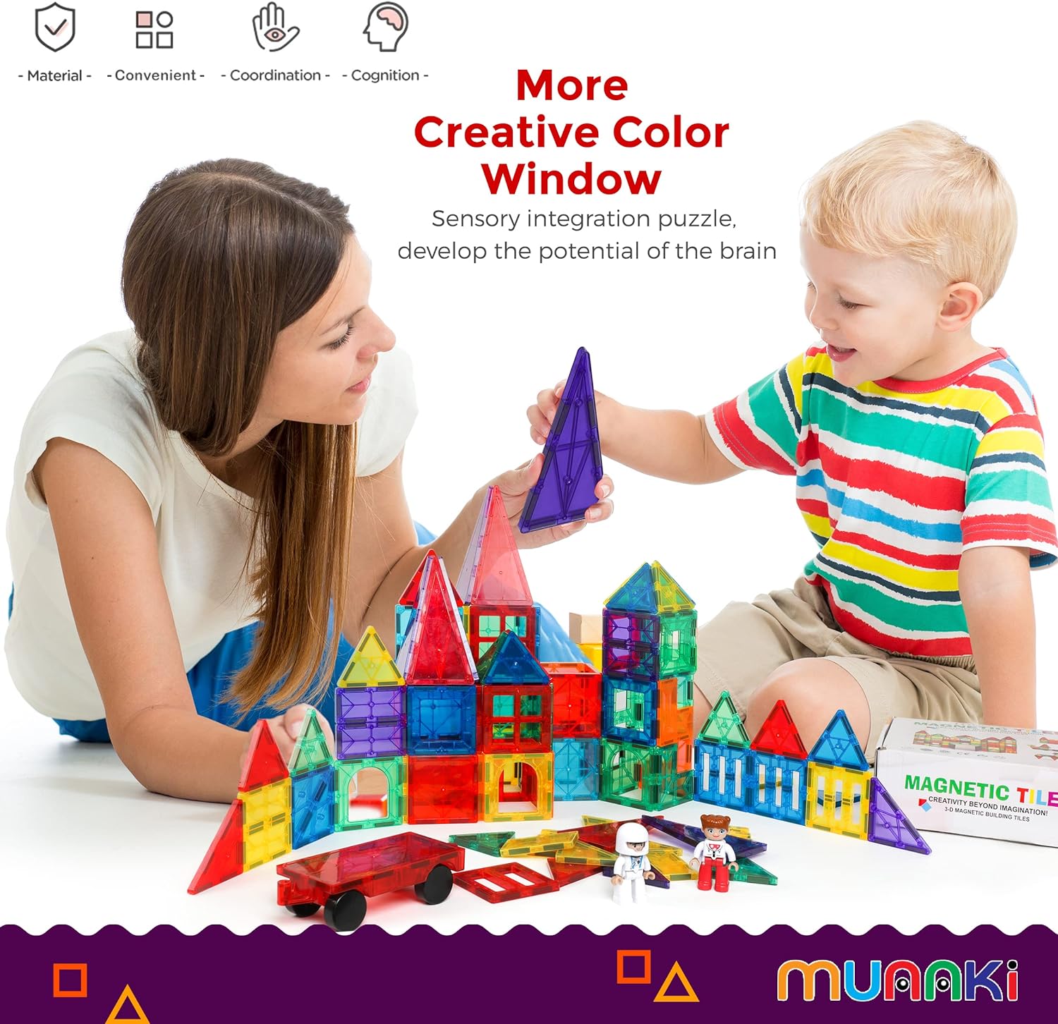 - Juguetes creativos para el crecimiento de los niños: el juego de azulejos magnéticos 'Munnki' contiene una gama diferente de formas y piezas que está especialmente diseñado para niños en edad preescolar o guardería infantil que pueden incorporarse para desarrollar triángulos de azulejos magnéticos 2D y 3D ilimitados y estructuras de bloque magnético cuadrado. Los niños pueden hacer autos, cohetes, castillos, jugar con amigos, etc. Aprender jugando es una excelente manera para que los niños adquieran diferentes habilidades a una edad temprana de la vida