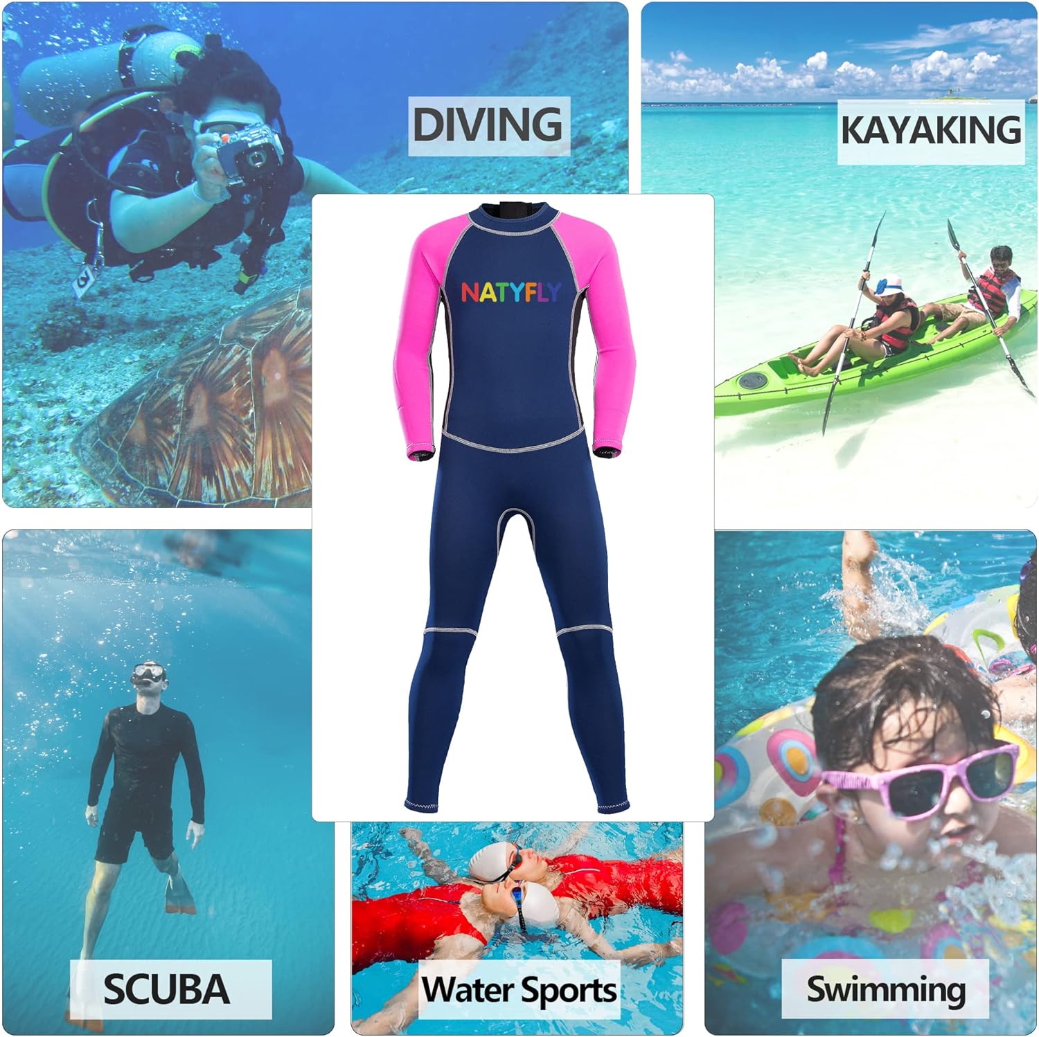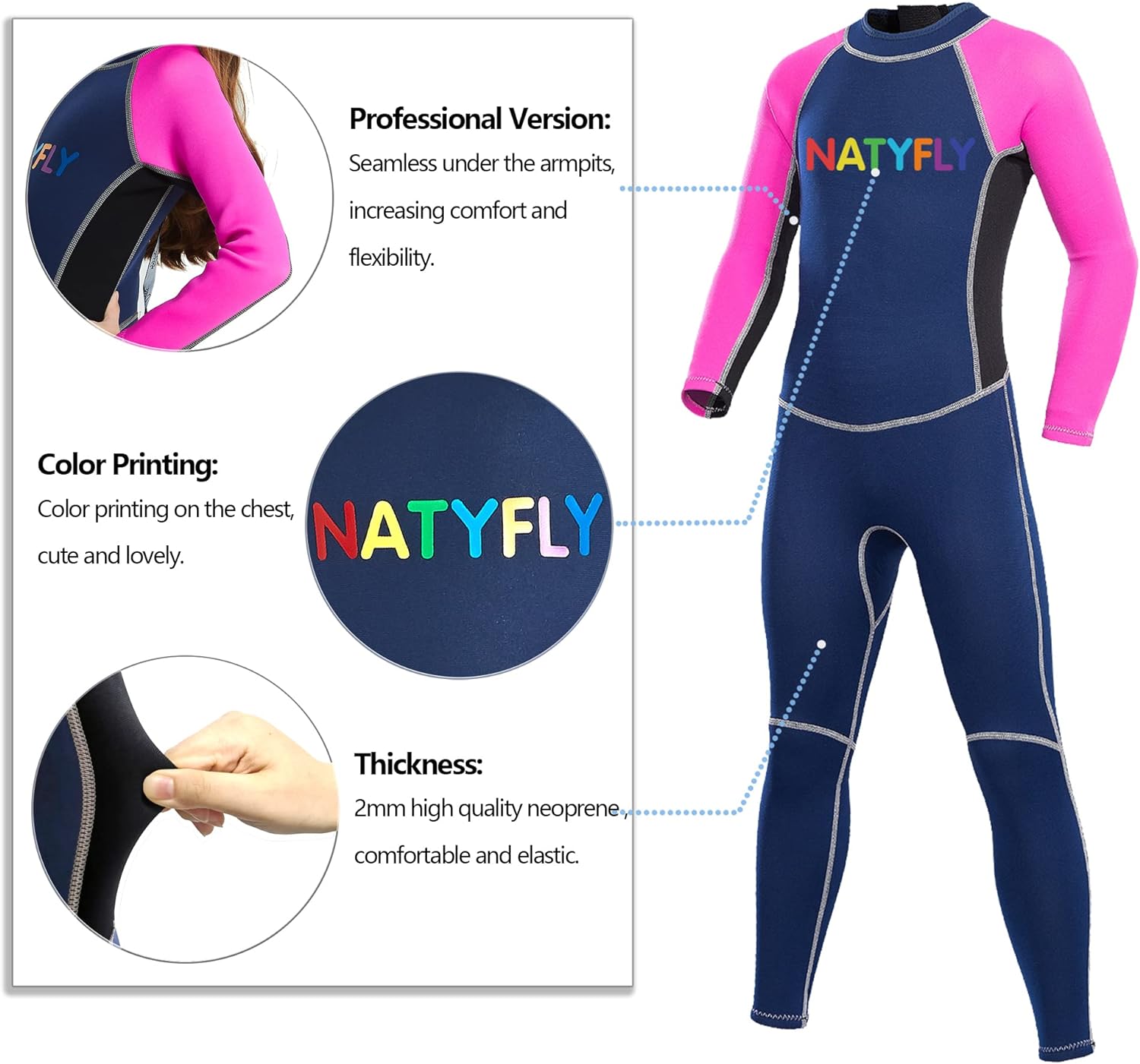 NATYFLY- Traje de Neopreno manga larga, rosado, Talla M