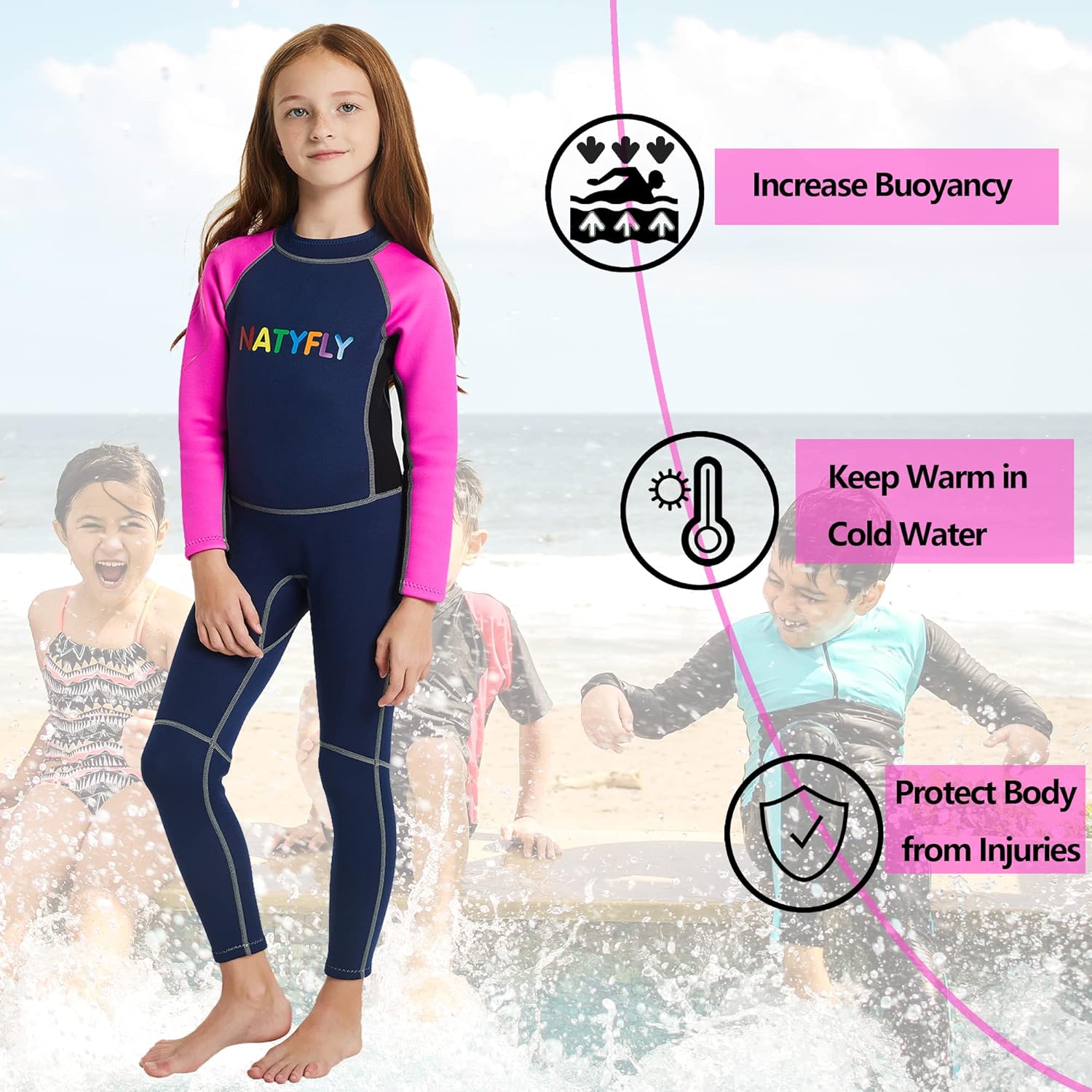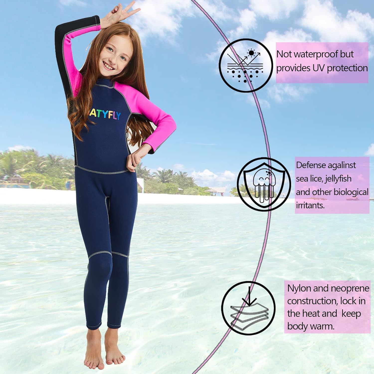 de 2 mm de espesor, mantiene a su hijo abrigado y cómodo en el agua.