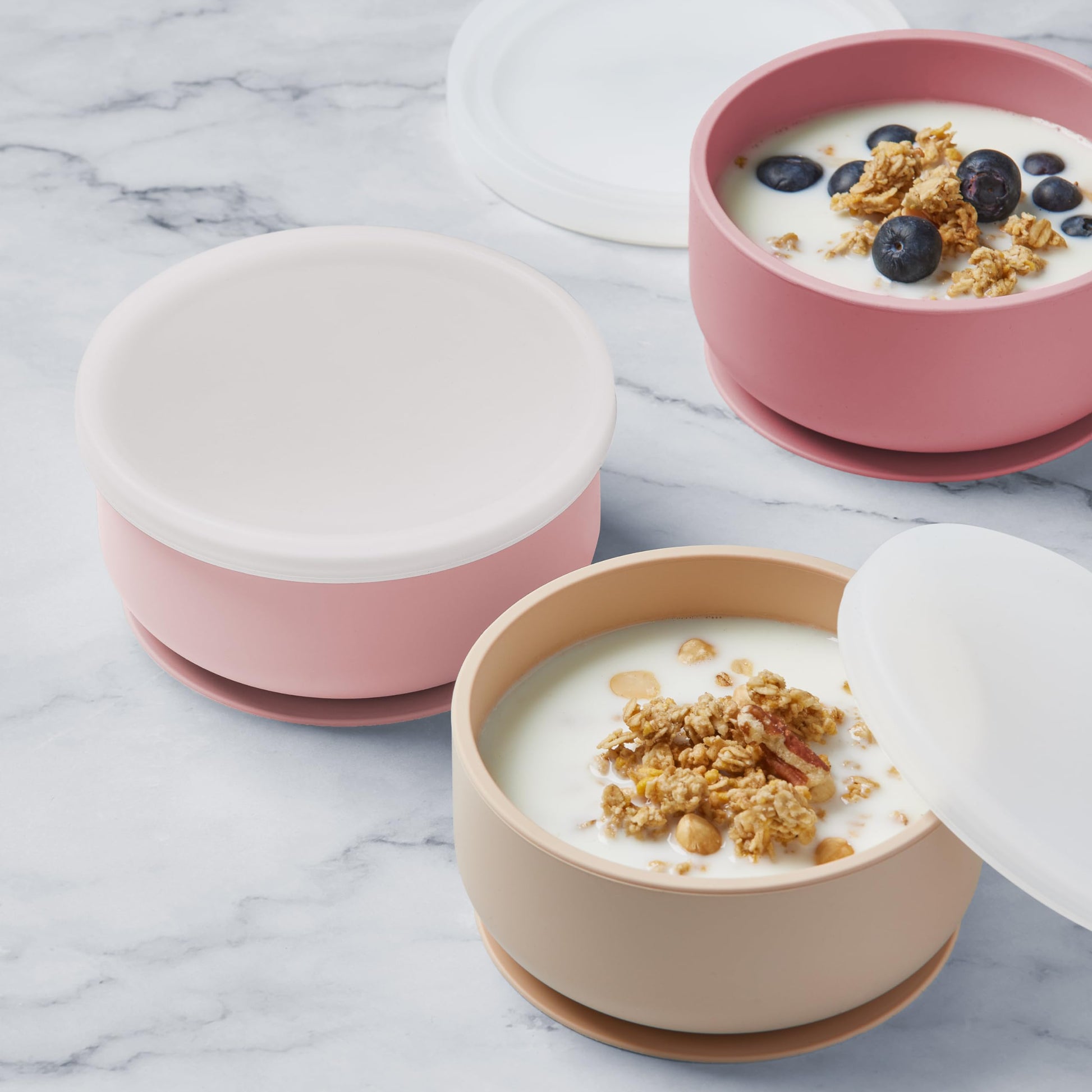 - Tazones de silicona para bebés con juego de succión | Incluye 6 piezas, perfectos para bebés de 6 meses en adelante; 3 ventosas con tapa transparente.