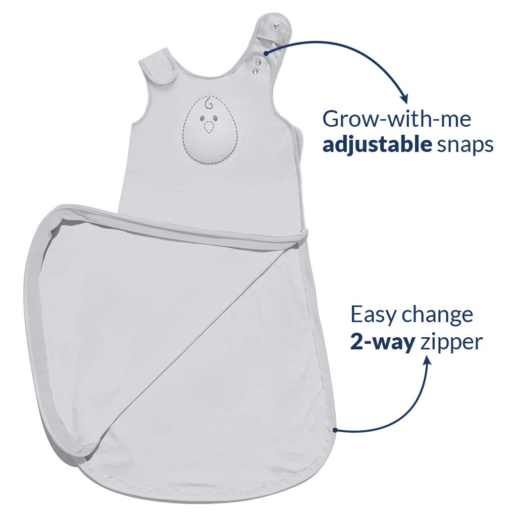 La cremallera de 2 vías para facilitar los cambios de pañales es silenciosa y las correas de hombro se ajustan con 2 pestañas para permitir que el saco Zen crece con tu bebé.