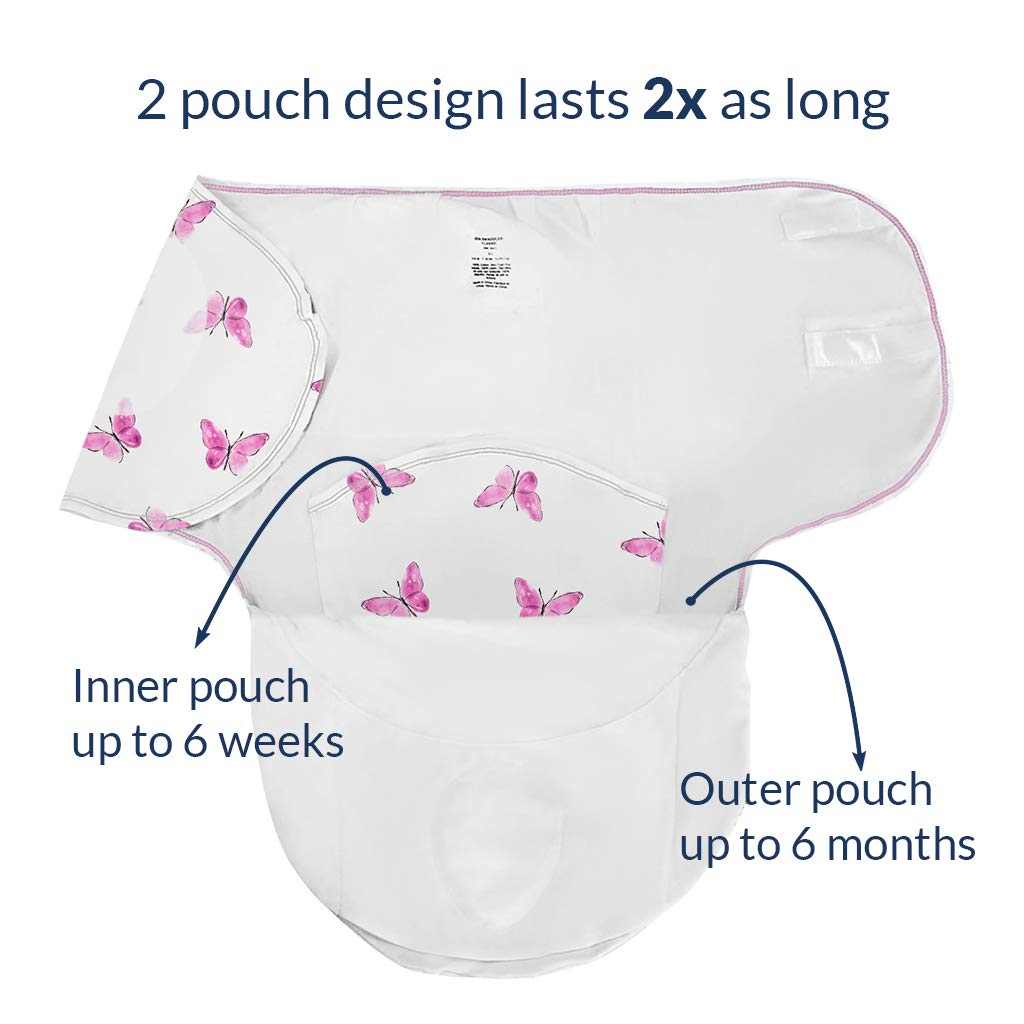 - Hecho para bebés de 0 a 6 meses. El innovador diseño de 2 tamaños en 1 significa que esta envoltura de bebé dura el doble de tiempo que las mantas normales. Además, permite que los bebés duerman en sus brazos dentro y fuera / posición libre para autocalmarse