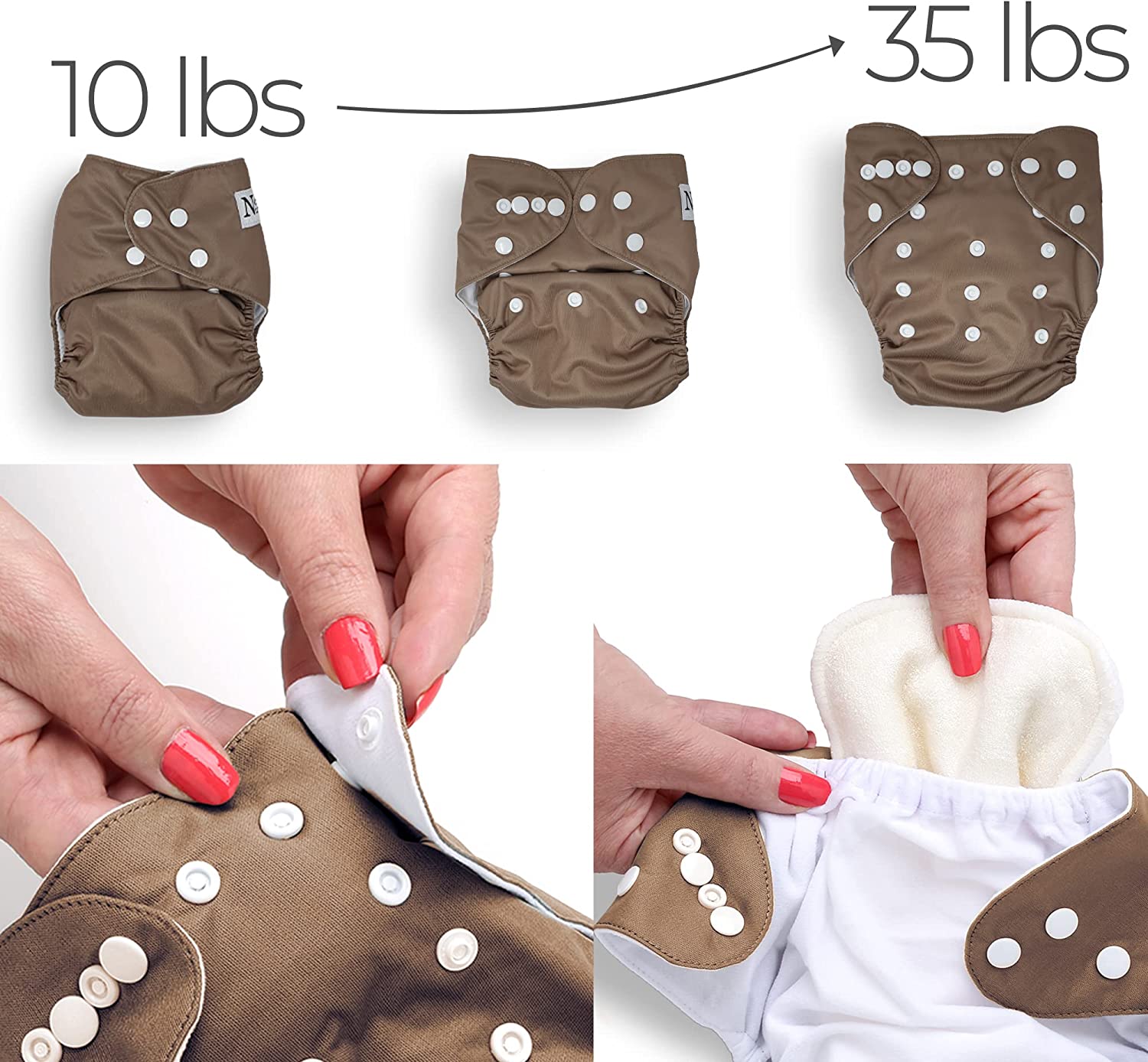 Pañales de tela versátiles para bebés: la solución de pañales reutilizables para bebés de Nora's Nursery se adapta desde recién nacidos hasta niños pequeños, acomodando de 10 a 35 libras con ajustes de presión ajustables. Estos insertos para pañales de tela garantizan un ajuste personalizado, lo que hace que el pañal de tela sea un complemento valioso y duradero para los elementos esenciales de su bebé. Experimente la comodidad y la rentabilidad de los pañales reutilizables a medida que crecen con su hijo