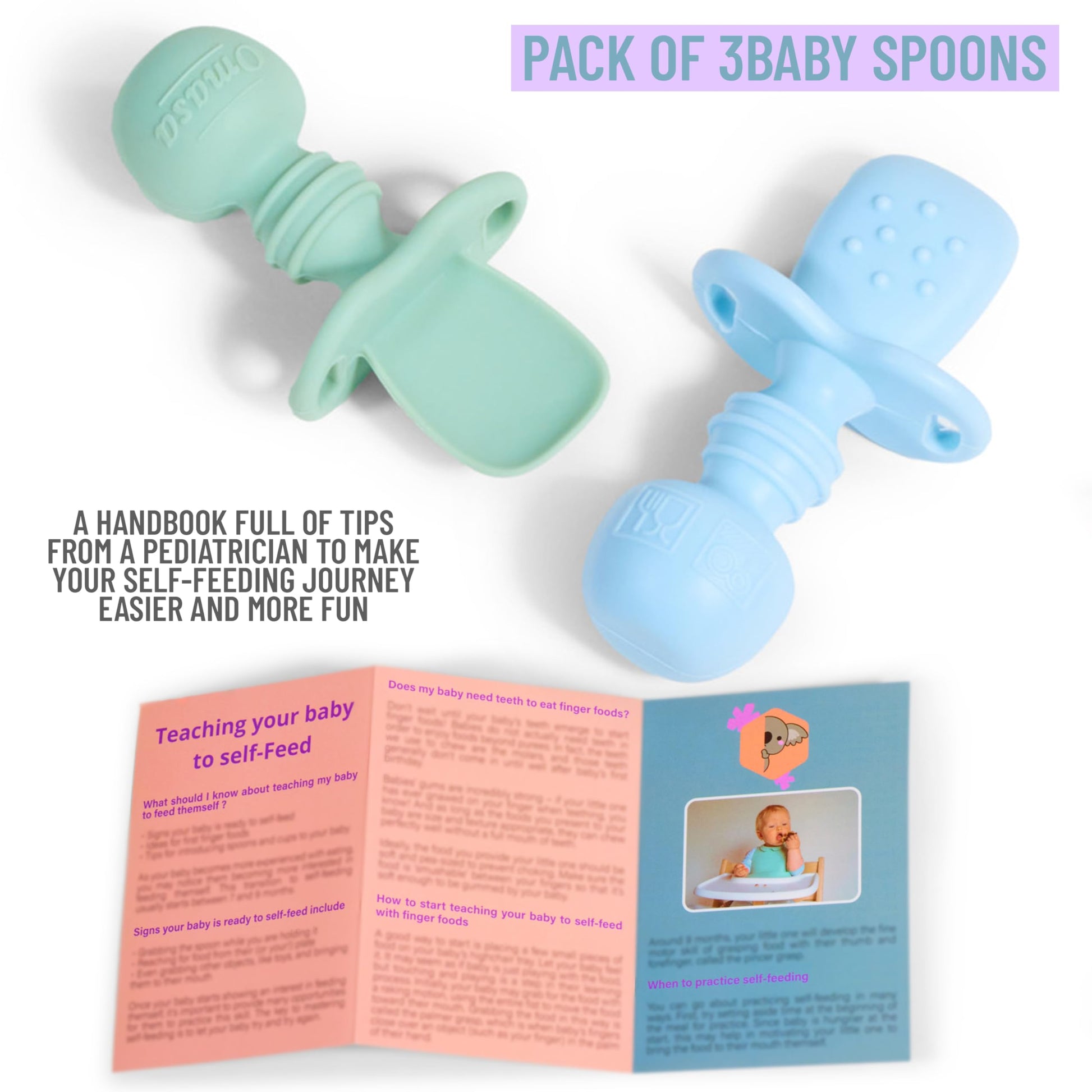 OMASA Cucharas de silicona para bebés de 6 meses en adelante
