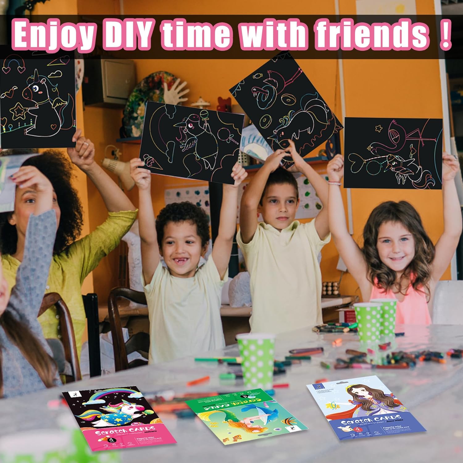 Fácil de usar: el papel raspador está hecho de cartón de calidad, no tóxico e inodoro, a juego con el bolígrafo de arañazos, solo necesitas raspar suavemente la capa para diseñar un hermoso patrón.