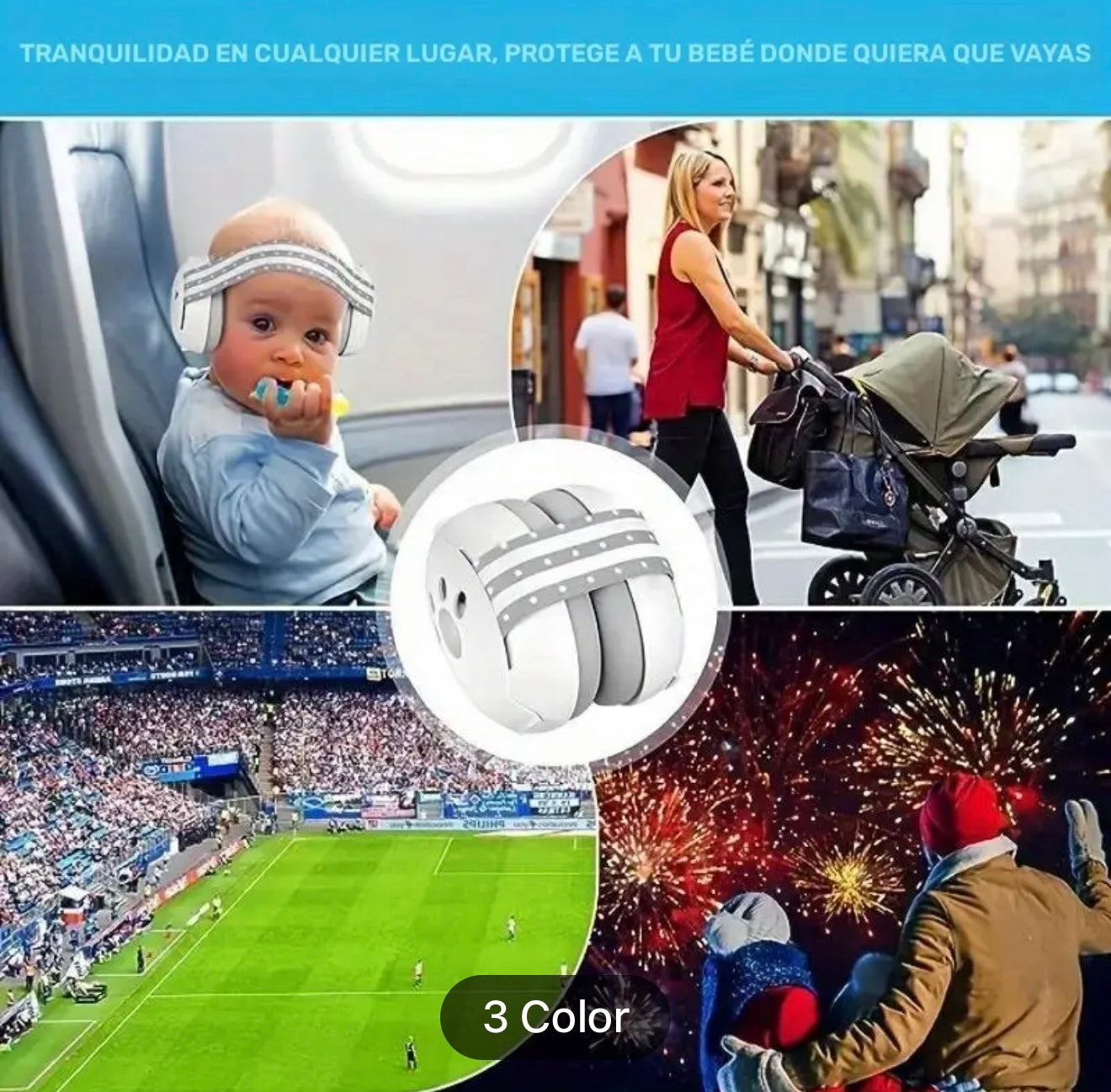 Orejeras para cancelación de ruido, color gris