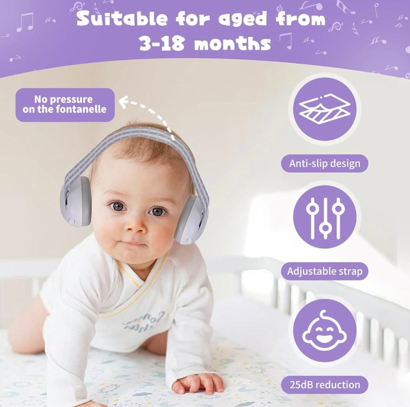 Orejeras y auriculares 2 en 1 para bebé con banda elástica ajustable para protección contra el ruido