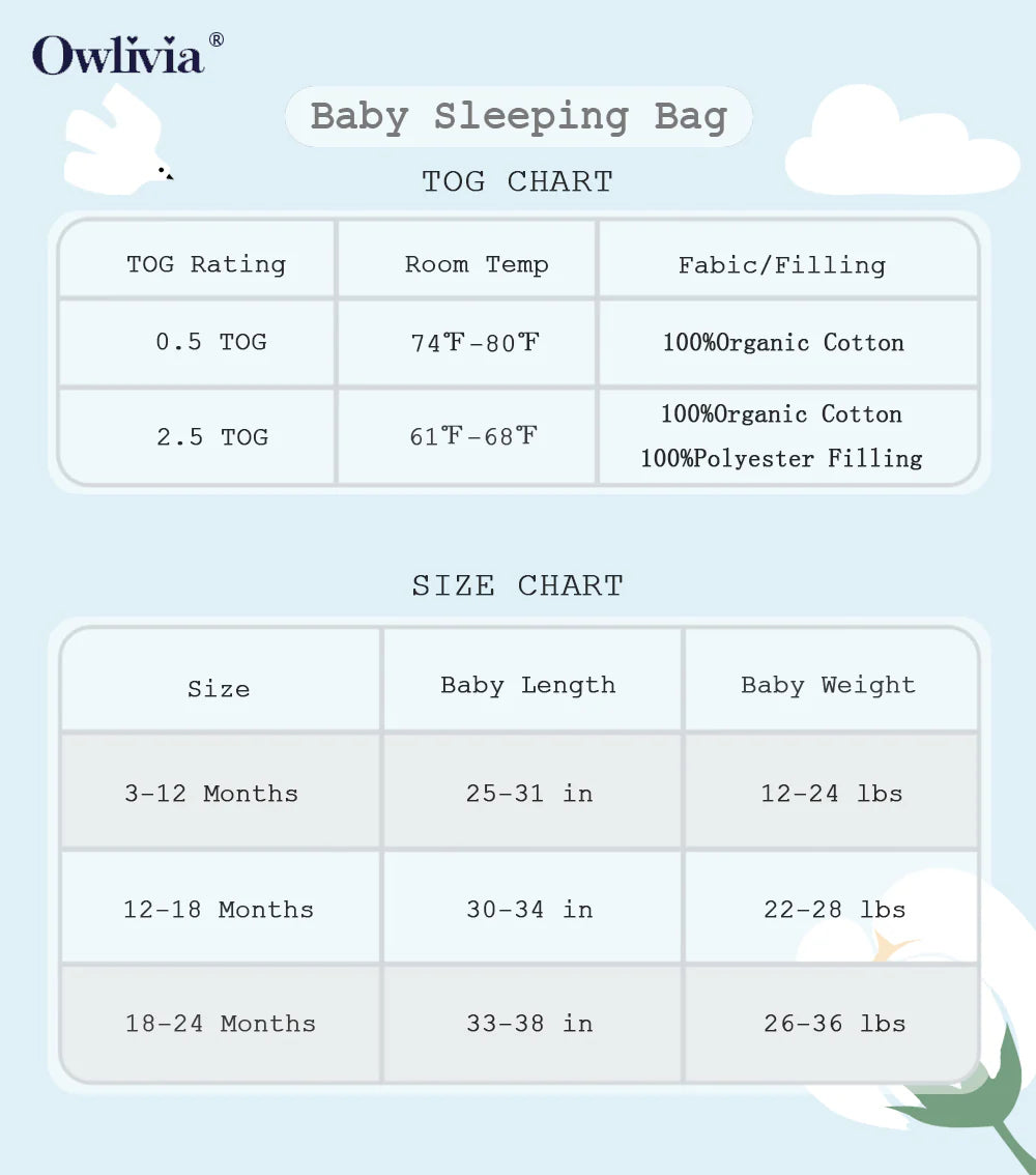 ORGÁNICOS OWLIVIA Saco de dormir 100 % algodón orgánico de 2,5 tog - 18-24 meses