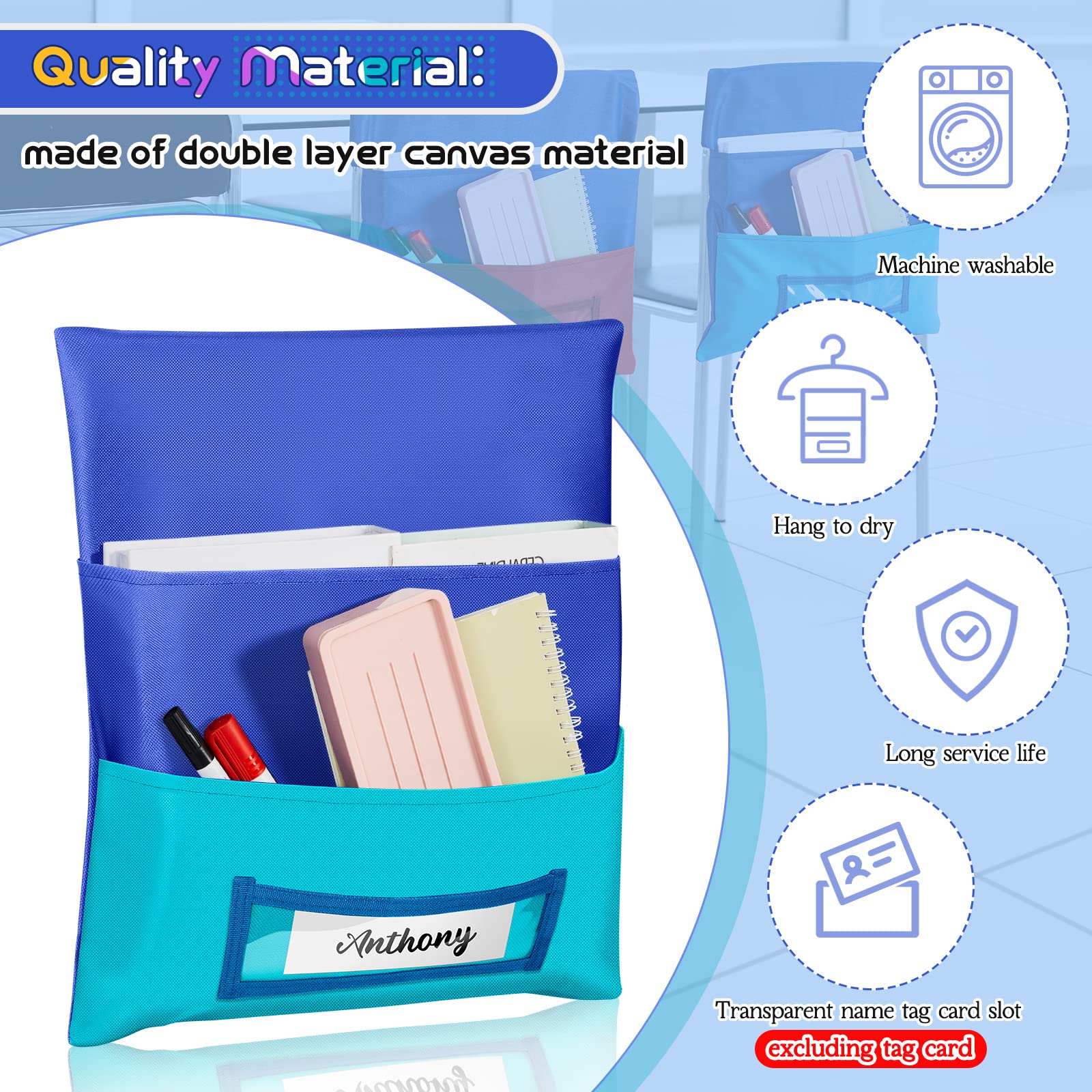 Material de calidad: los bolsillos de la silla para estudiantes miden aproximadamente 16 pulgadas de ancho y 19 pulgadas de alto, están hechos de lona duradera, están bien hechos y tienen un proceso de costura resistente, no son fáciles de rasgar o romper, se pueden lavar a máquina, el material de calidad puede servirle durante mucho tiempo.