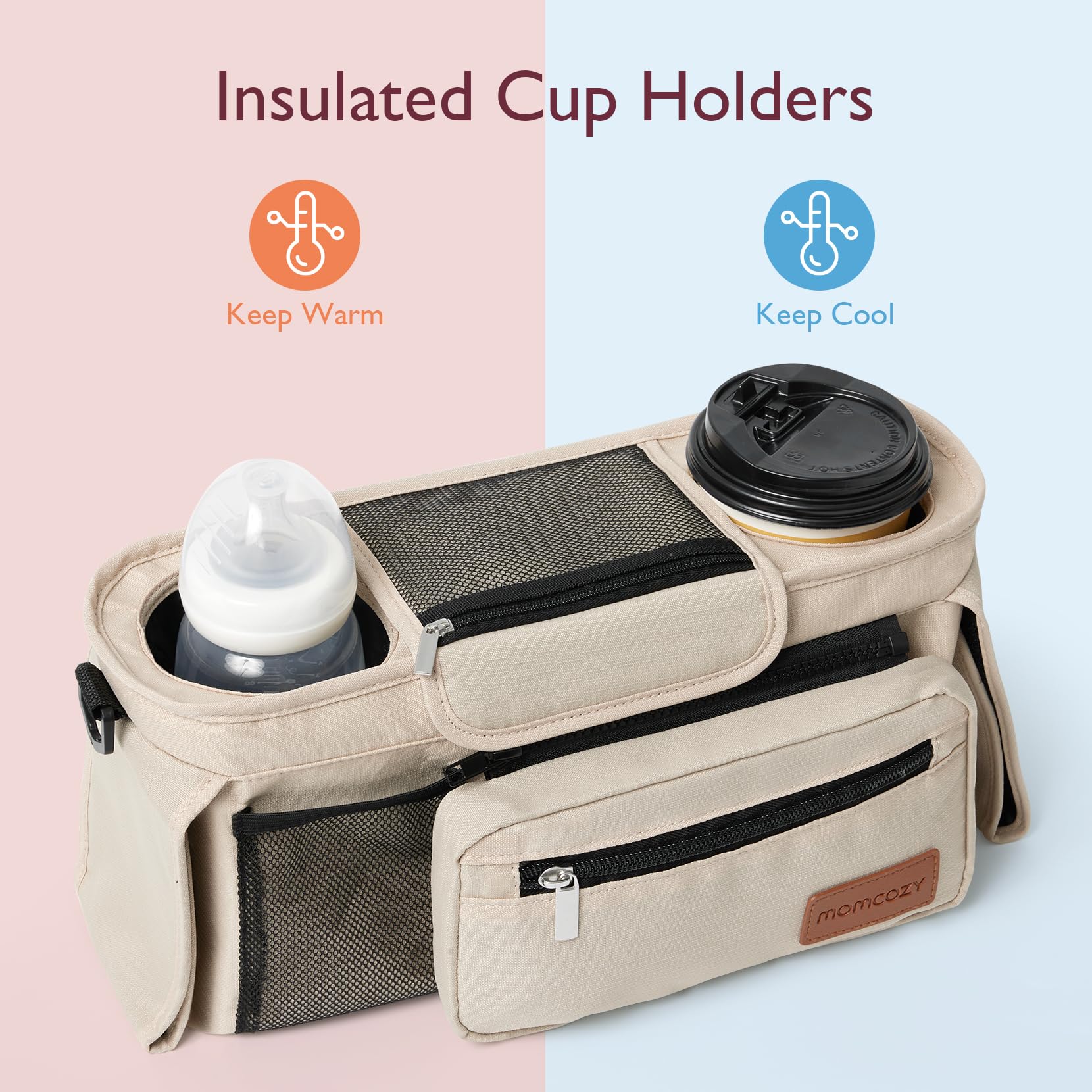 Organizador universal para cochecito de bebé Momcozy, 2 portavasos aislados