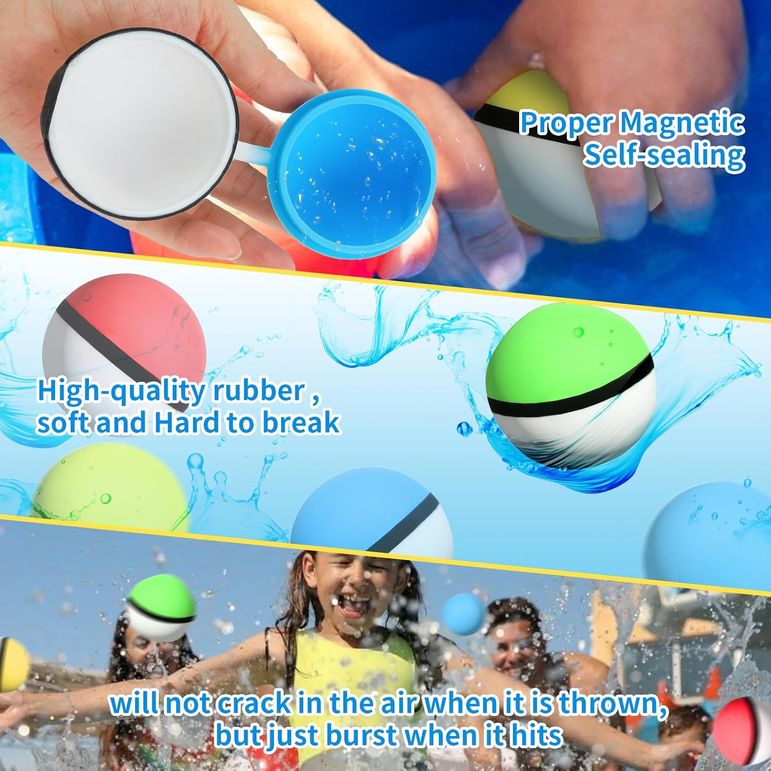 Diseño único: este globo con bomba de hidrógeno reutilizable adopta tecnología magnética y material de silicona, lo que lo hace extremadamente duradero y perfecto para la diversión del verano.