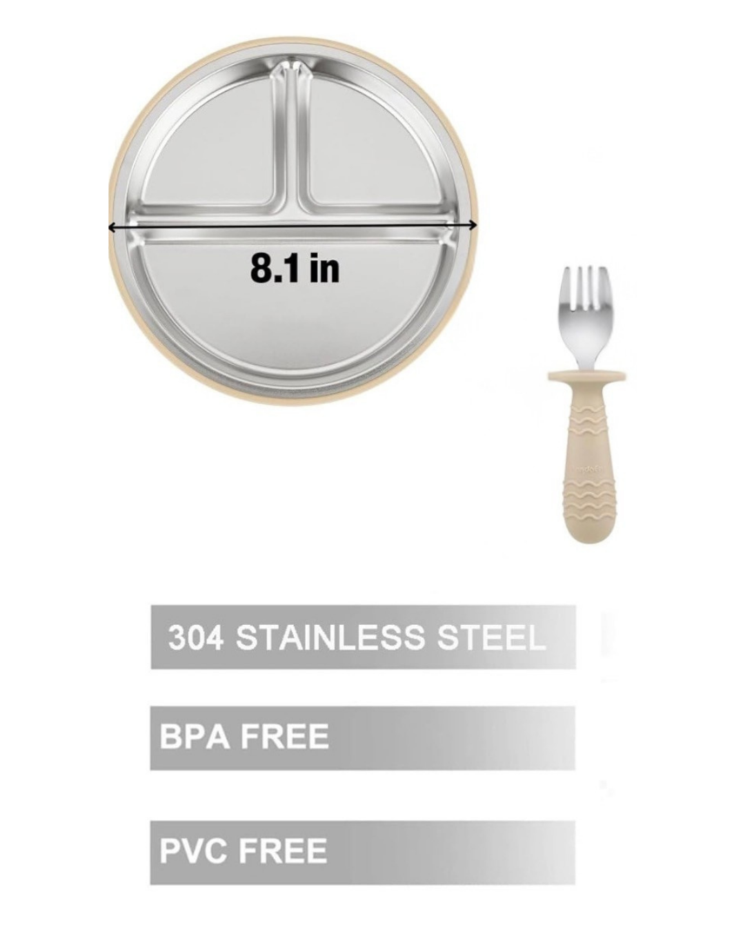 PandaEar plato de succión de acero inoxidable con tenedor