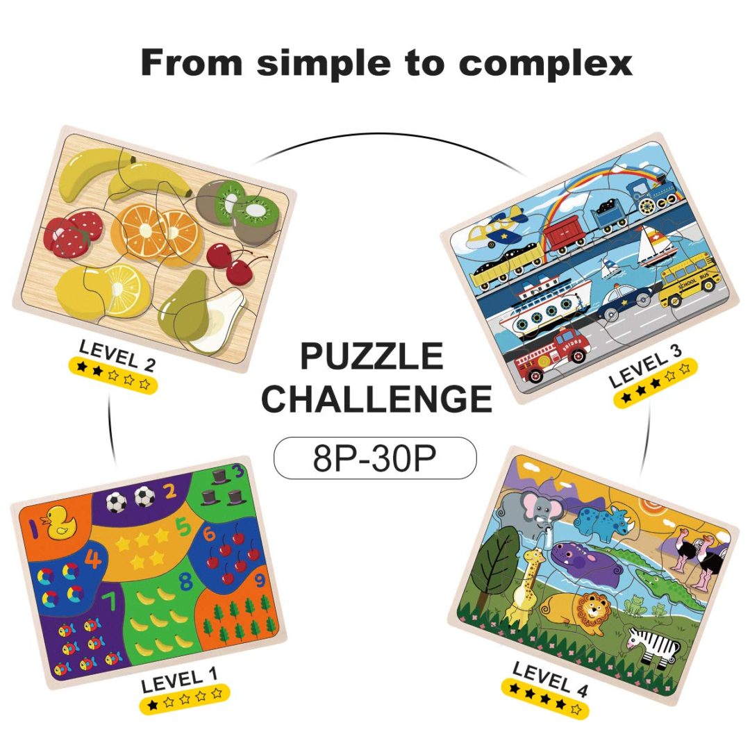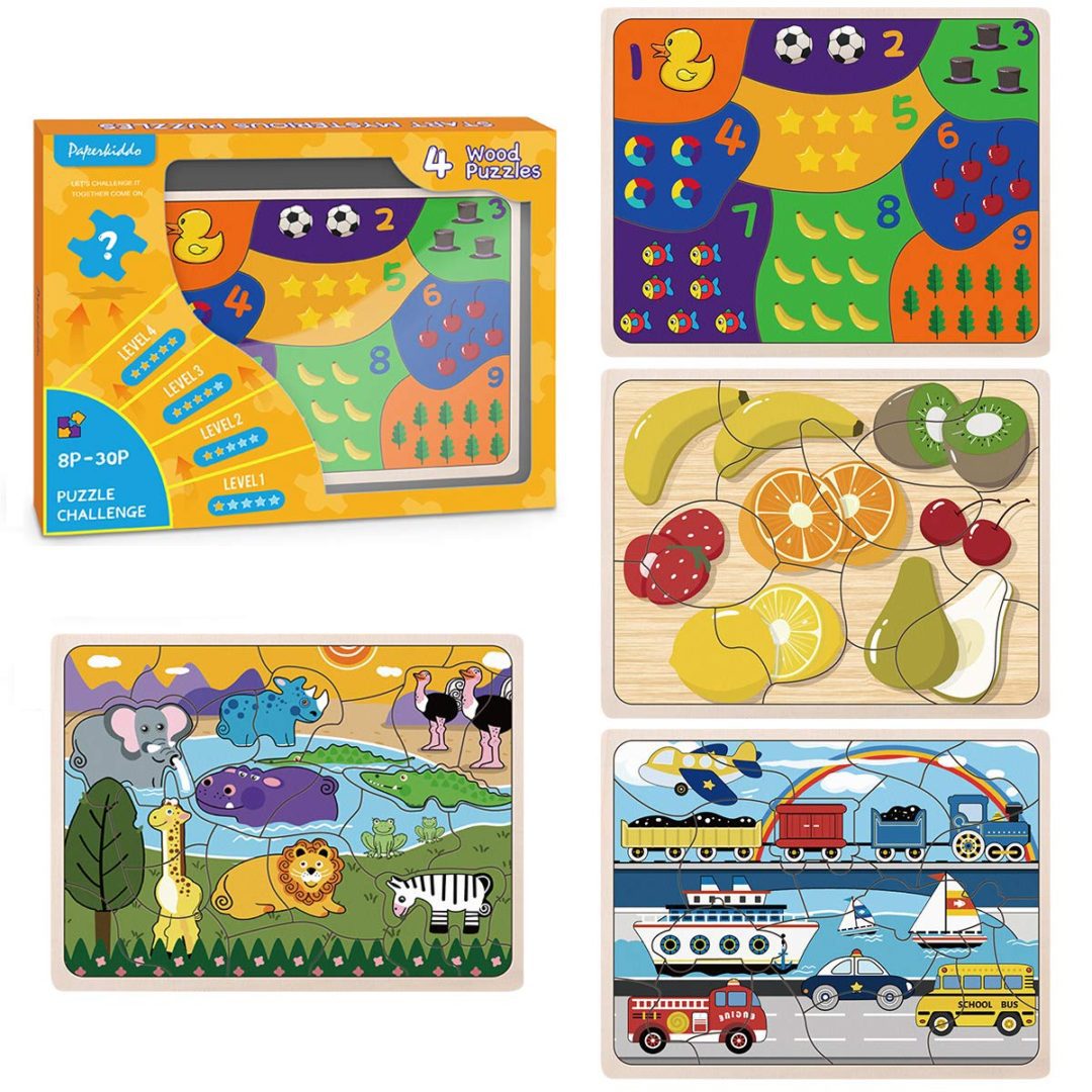 PAPERKIDDO - Puzzles de madera para niños-4 unidades