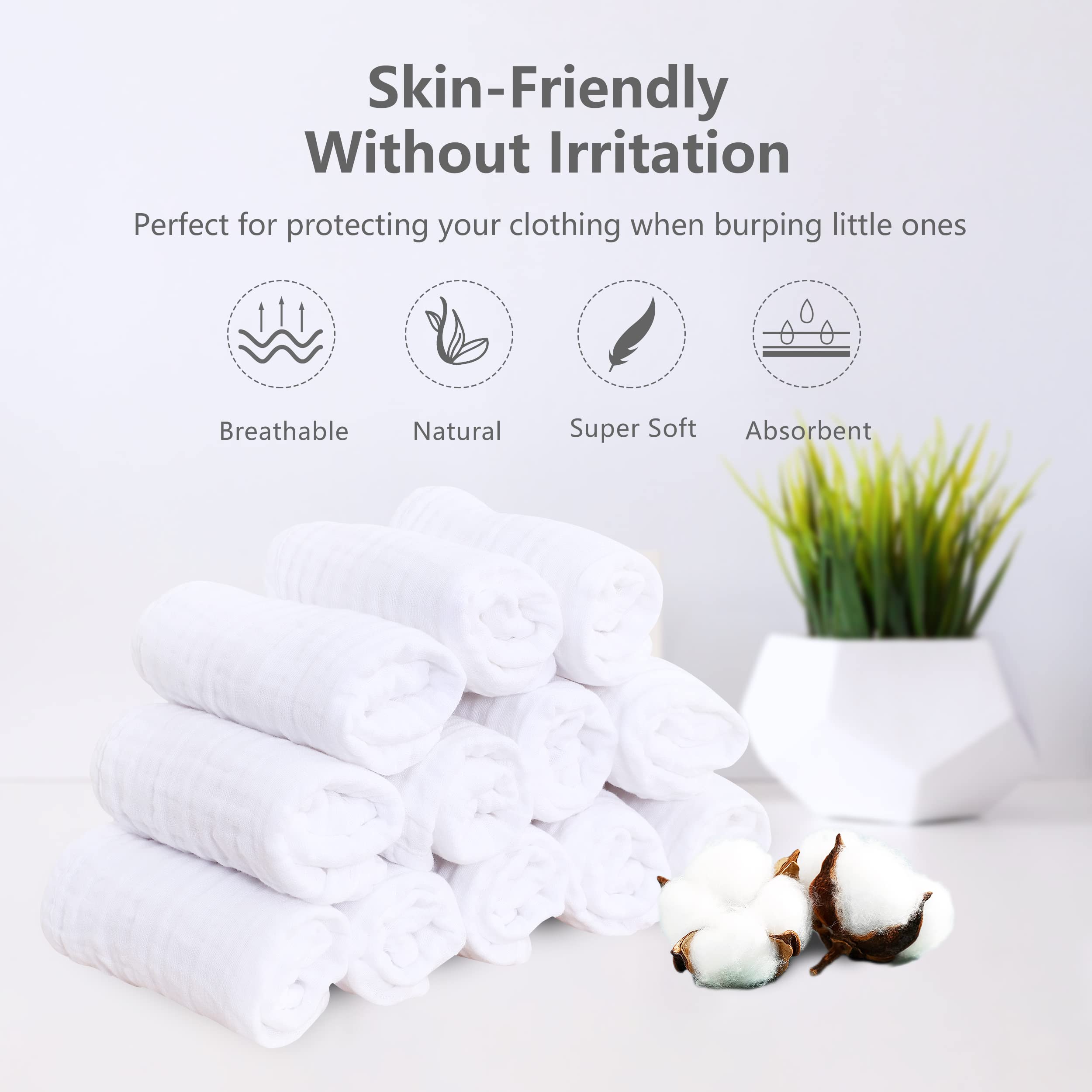 Paquete de 12 baberos de muselina, grandes, 100% algodón