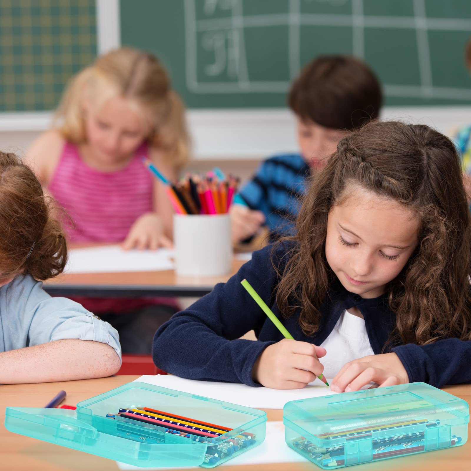 Paquete de 12 cajas de lápices de plástico transparente a granel con tapa cierre a presión, color jade