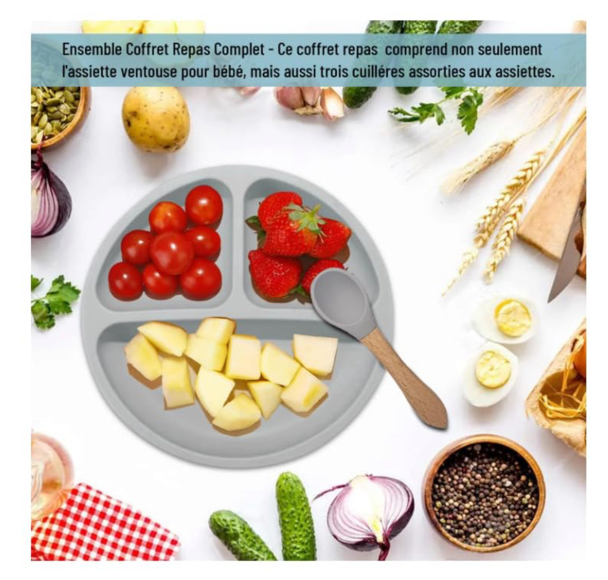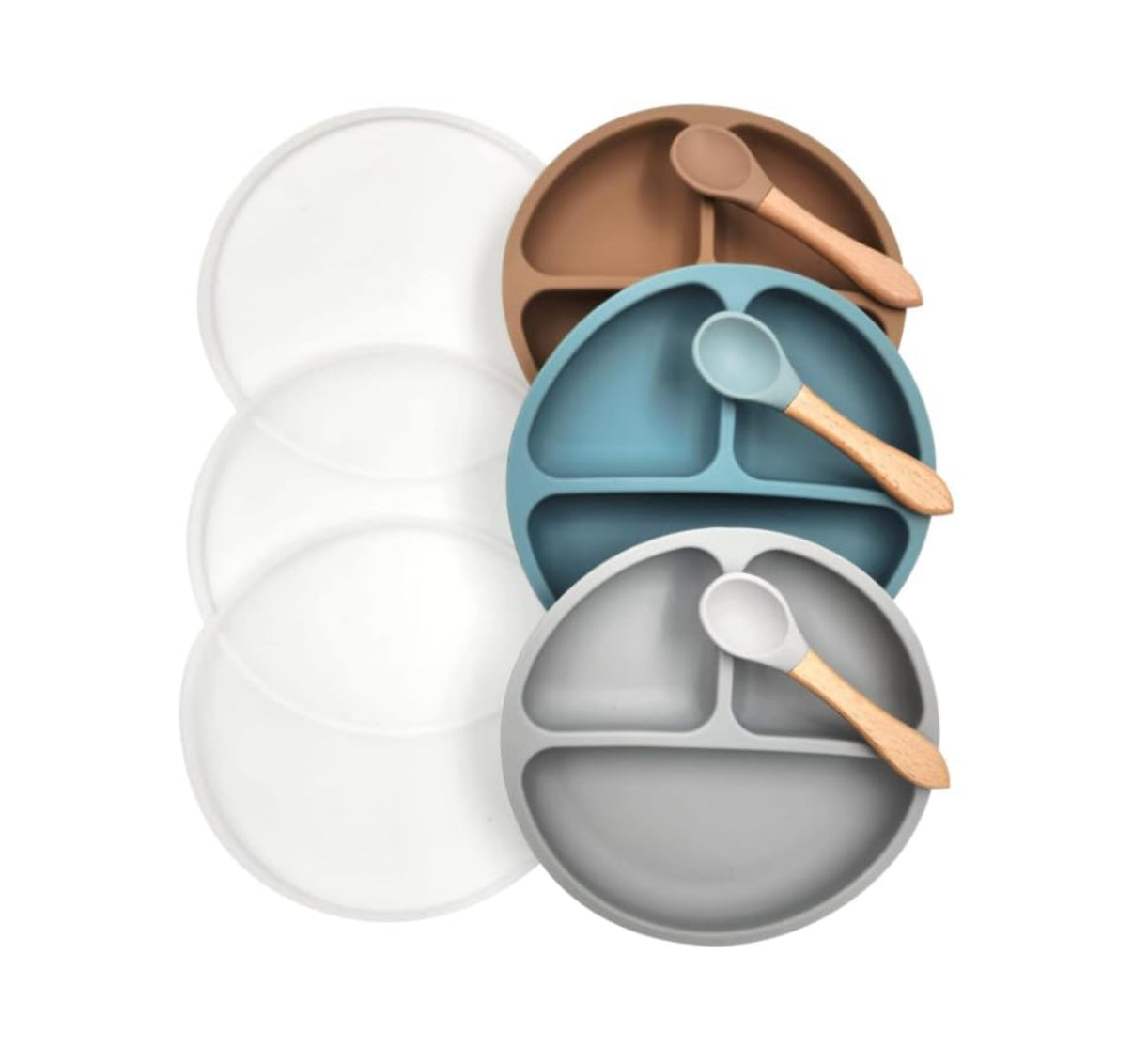 Paquete de 3 platos para bebés con succión y 3 cucharas para bebé, sin BPA