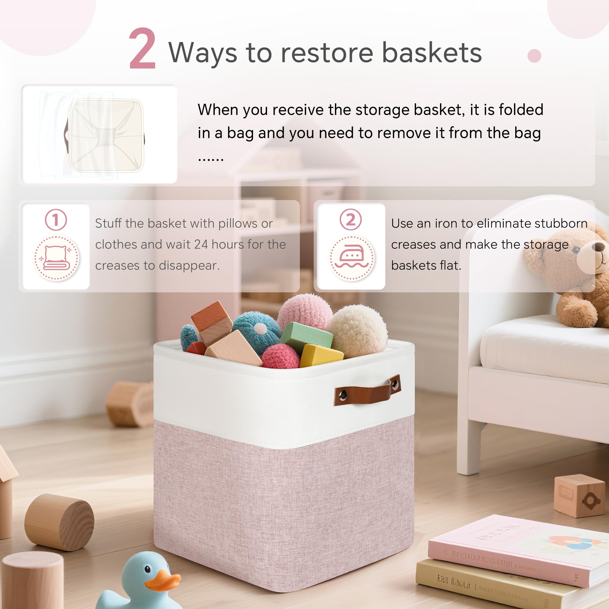 Paquete de 6 cestas de almacenamiento plegables de 11 x 11 pulgadas con asas de cuero
