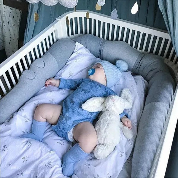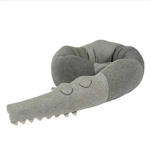 Parachoques de cama o cuna de bebé, cocodrilo gris