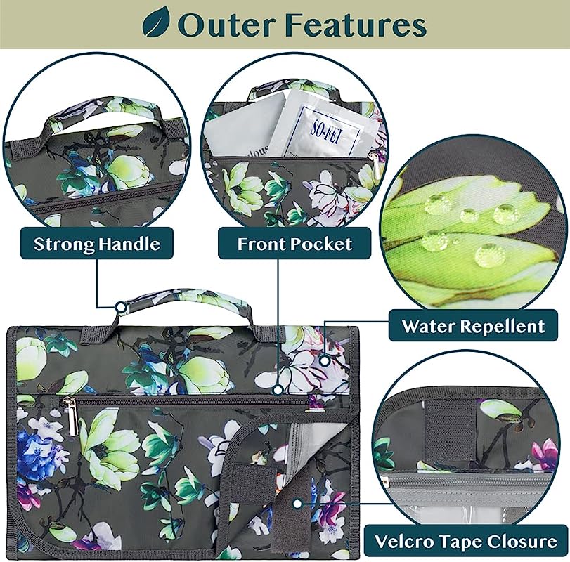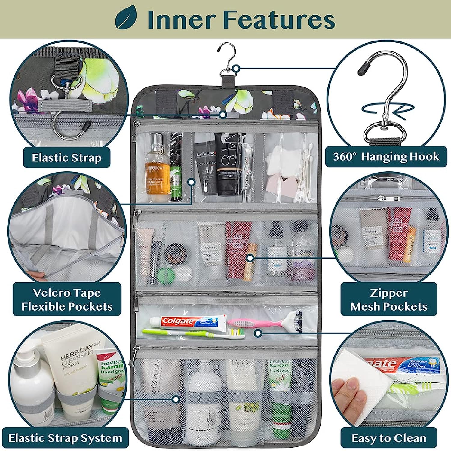 Organizador de bolsas de viaje para cosméticos colgantes: esta bolsa de aseo para mujer tiene un gancho para colgar y múltiples bolsillos que te ayudan a mantenerte organizado durante viajes de negocios, viajes de vacaciones. El gancho para colgar facilita colgar el neceser en las barras del baño con ducha del hotel. Abra la cremallera de su neceser para revelar compartimentos para organizar su champú, productos de higiene facial para el cuidado de la piel. Este neceser de viaje es un accesorio esencial para un crucero por Europa, un avión, un viaje a Hawái y una luna de miel.