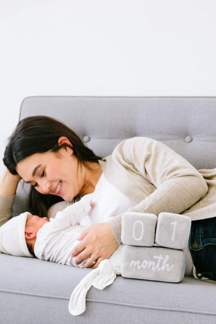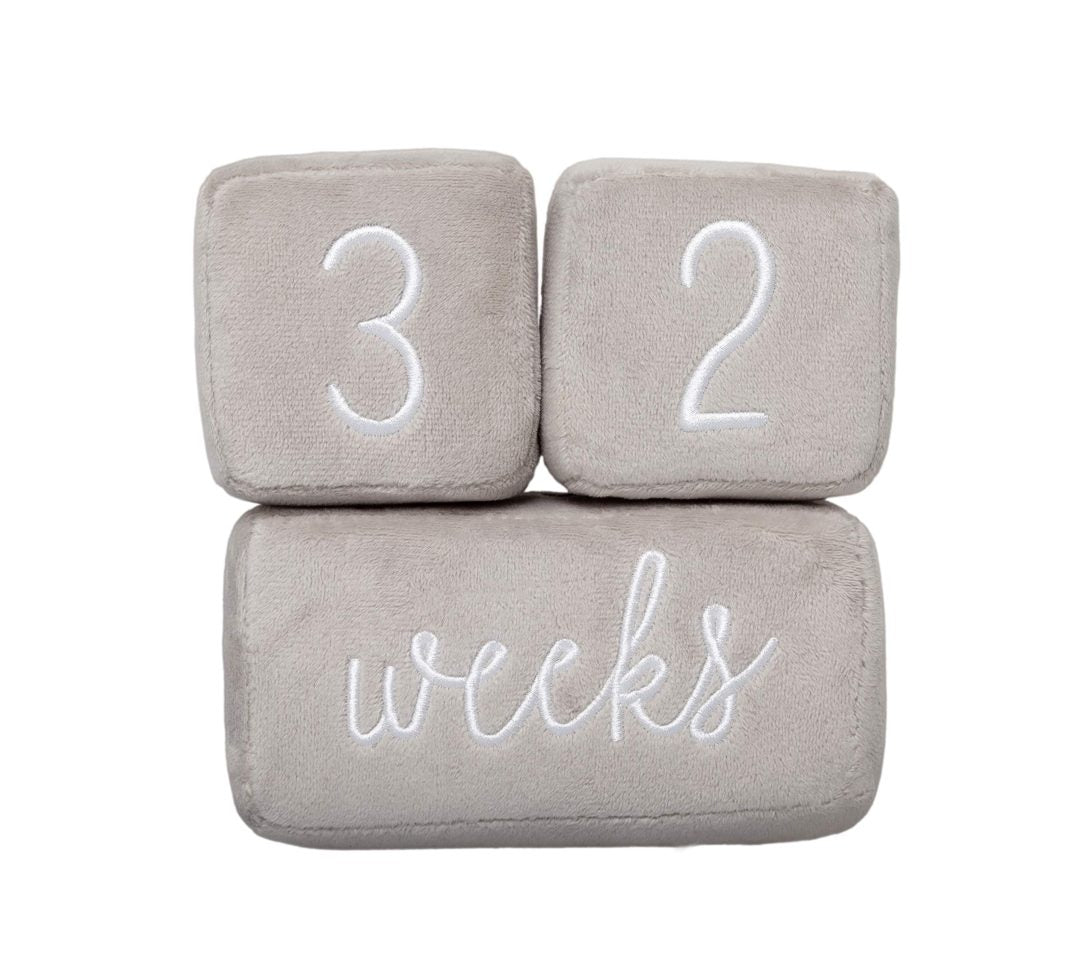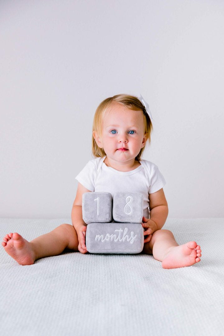 Pearhead Bloques de edad de hito para compartir fotos de bebé, accesorios de imagen, juego de 3 bloques, gris