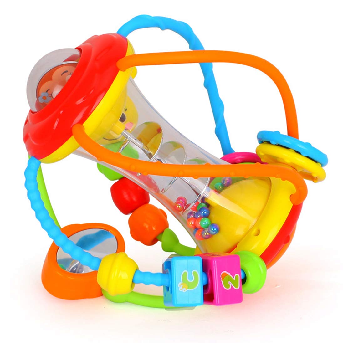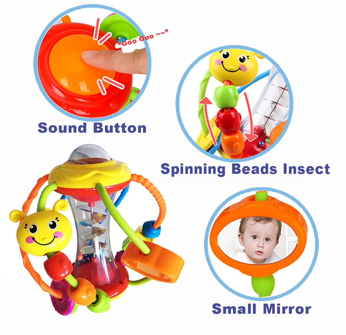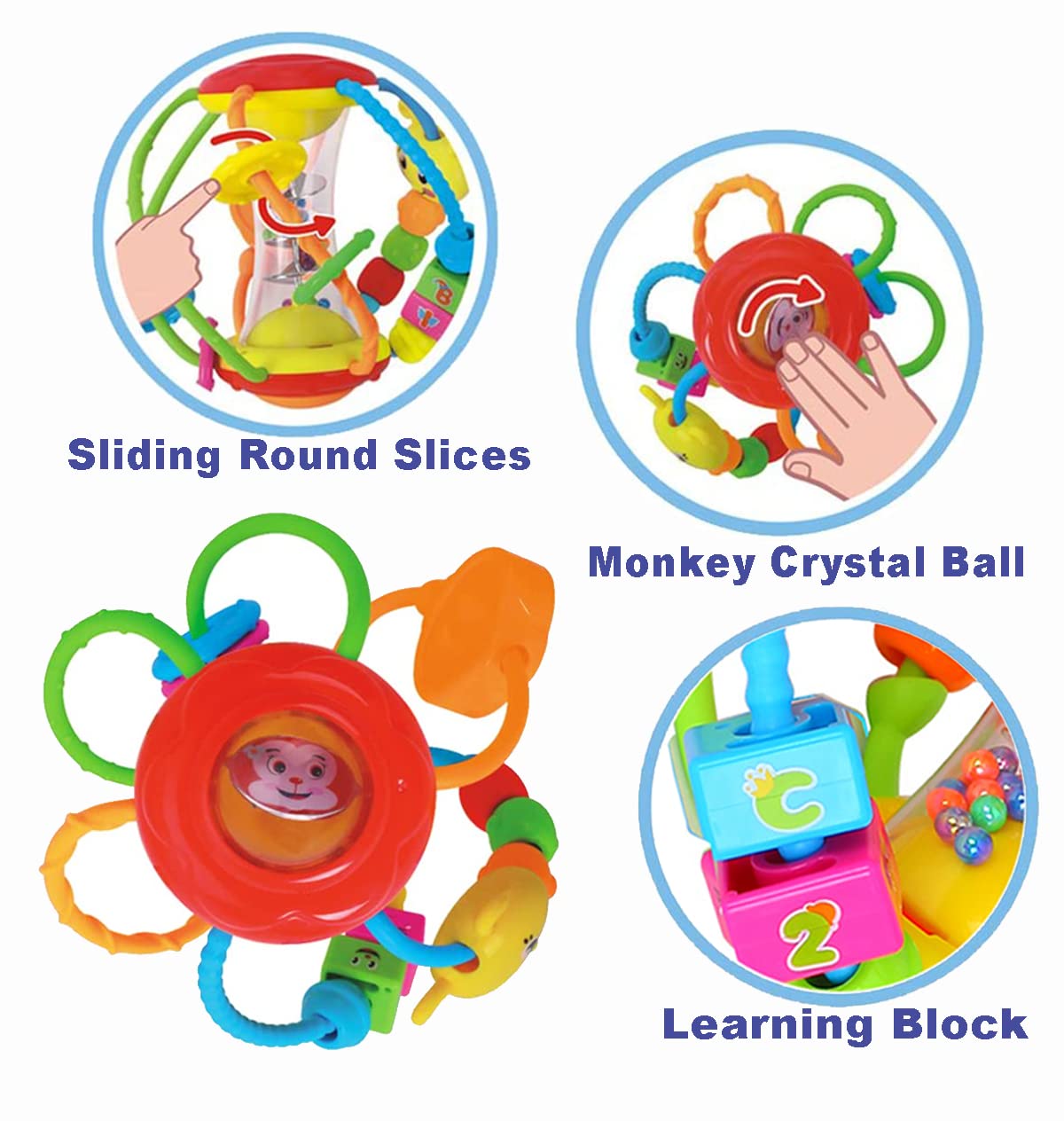 Excelente juguete para bebés: perfecto para sostener, agarrar, golpear y fortalecer los músculos de la mano del bebé. Fomenta gatear mientras tu pequeño persigue la pelota de sonajero. Descubrir y jugar con la pelota sensorial. Juguetes de campanas agitadoras para bebés.