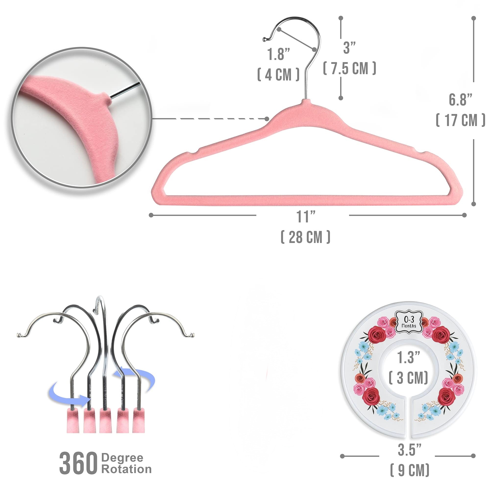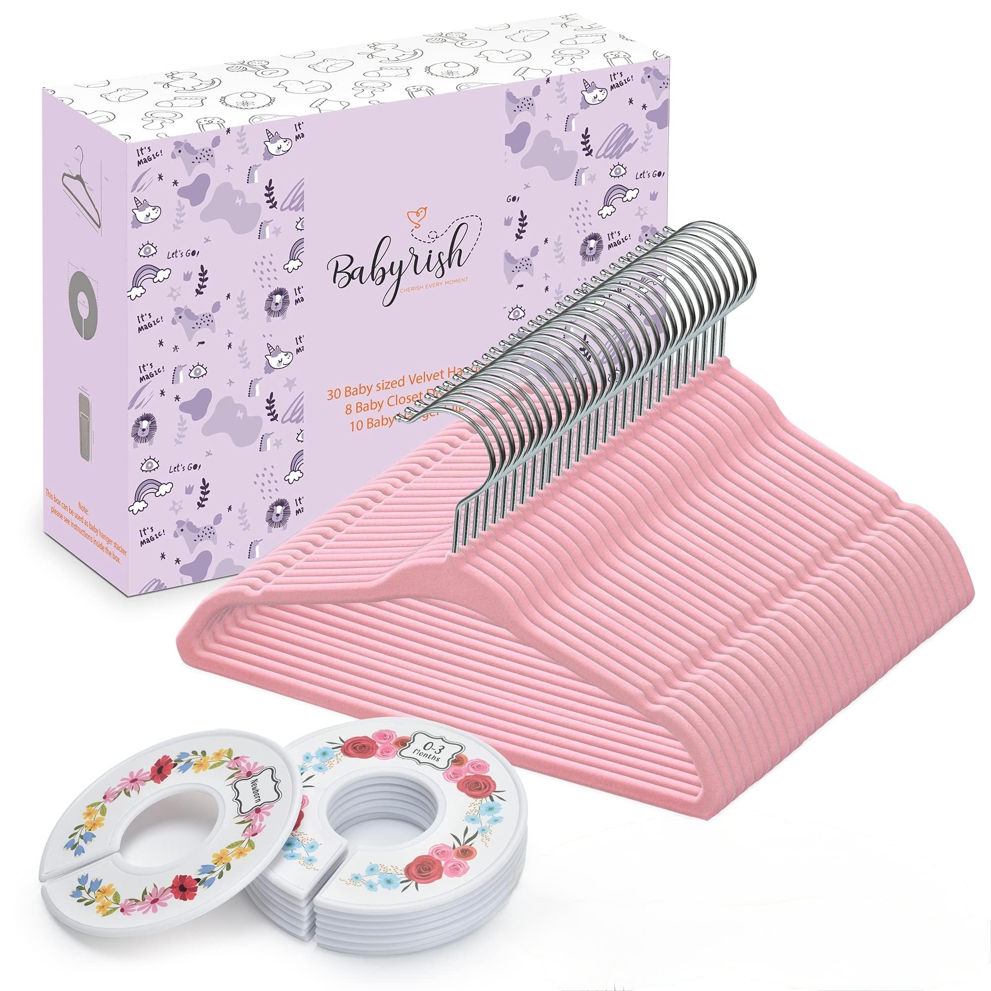 Perchas de terciopelo para bebé, paquete de 30 perchas ultrafinas antideslizantes para ropa de guardería con 8 separadores de ropa