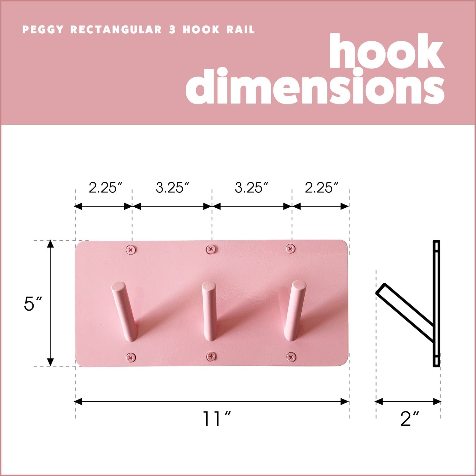 Percheros de pared - Peggy rectangular con 3 ganchos - Paquete de 1